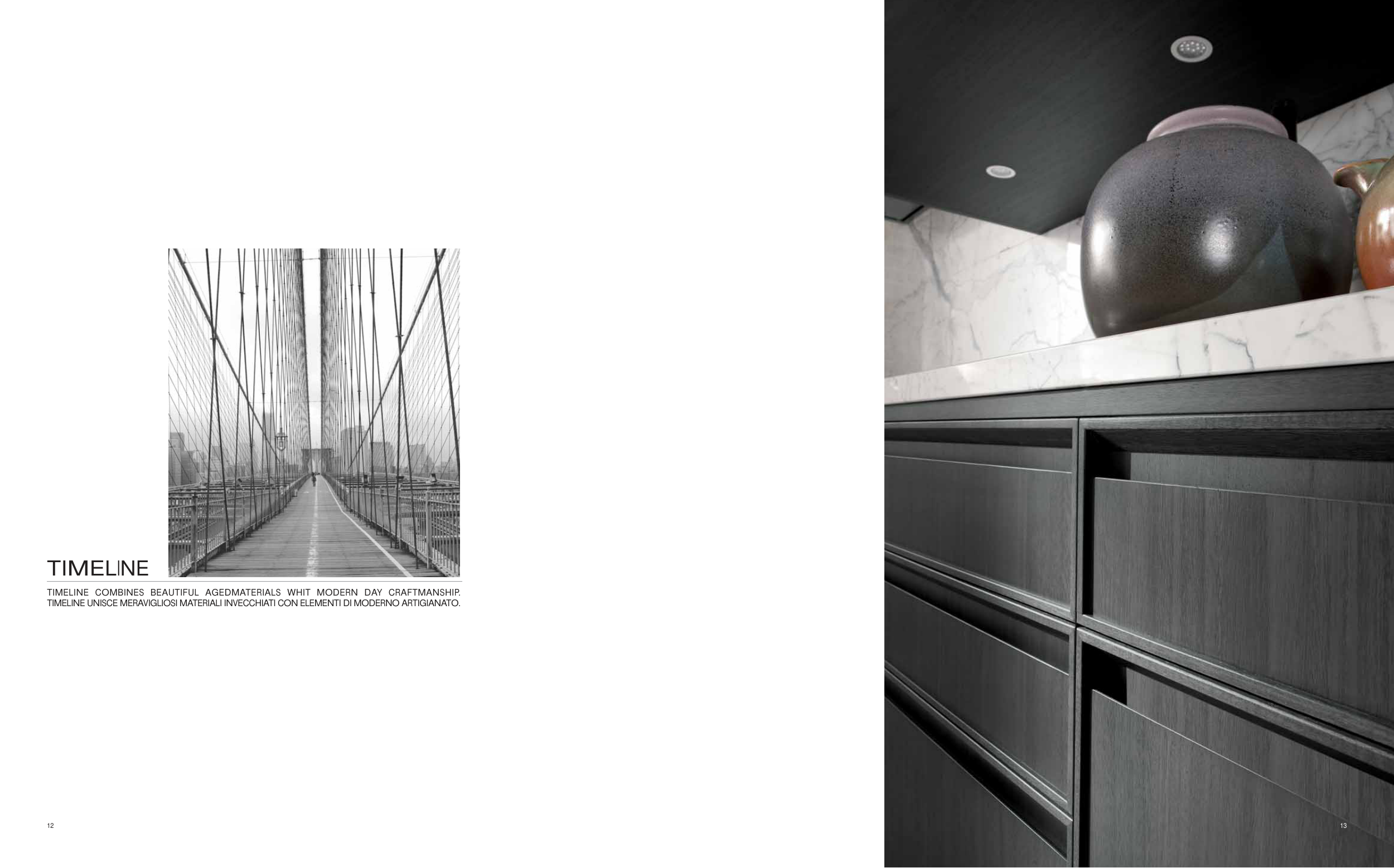 12 13 TIMELINE COMBINES BEAUTIFUL AGEDMATERIALS WHIT MODERN DAY CRAFTMANSHIP. TIMELINE UNISCE MERAVIGLIOSI MATERIALI INVECCHIATI CON ELEMENTI DI MODERNO ARTIGIANATO. TIMELINE