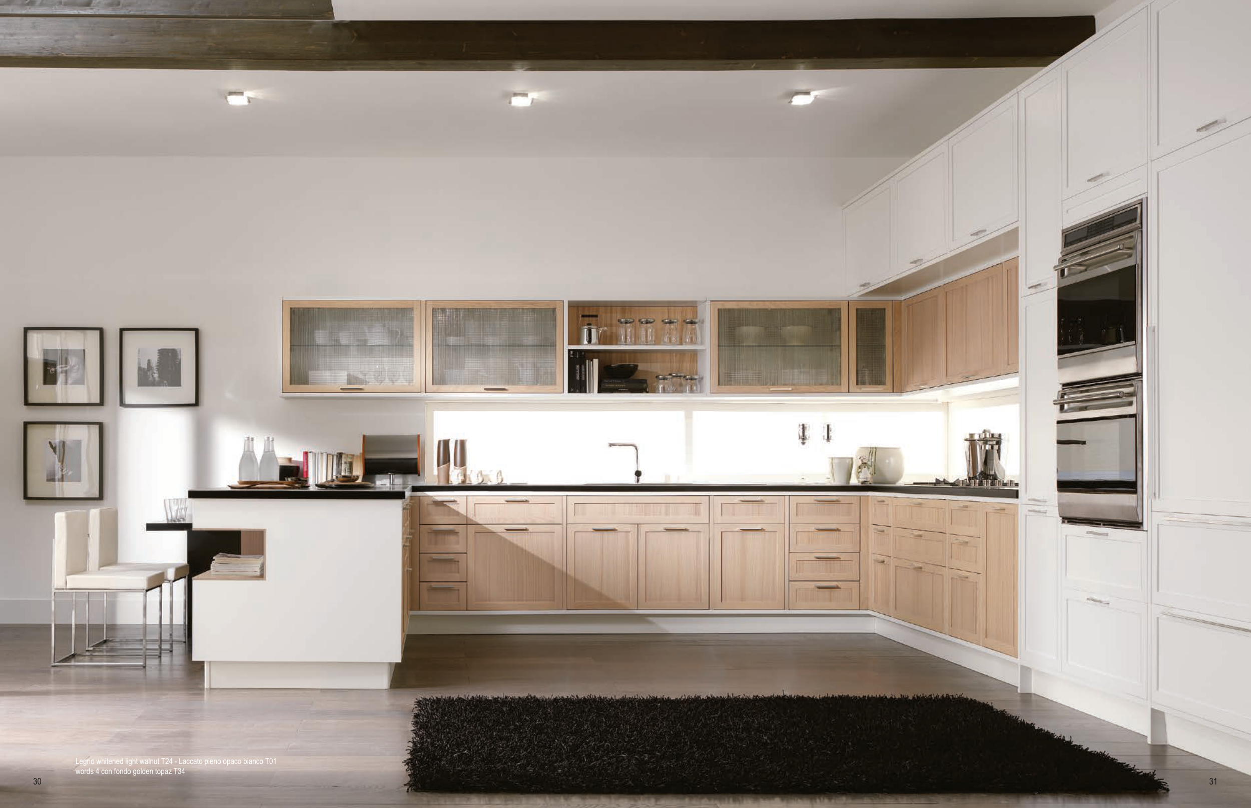 Legno whitened light walnut T24 - Laccato pieno opaco bianco T01