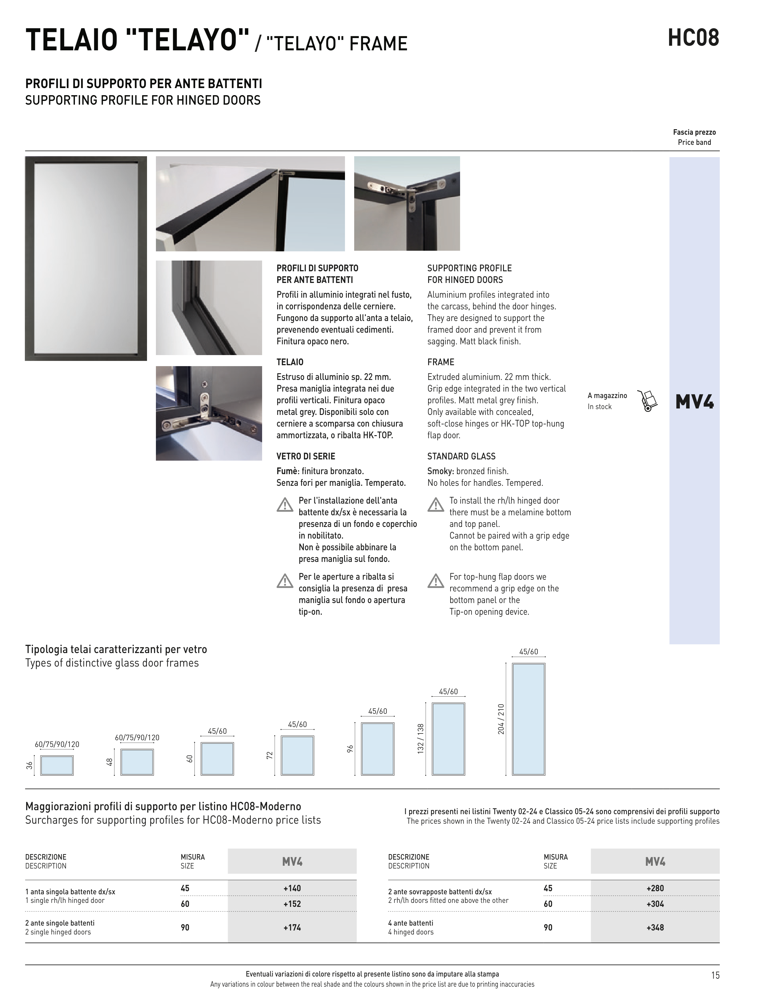 Surcharges for supporting profiles for HC08-Moderno price lists