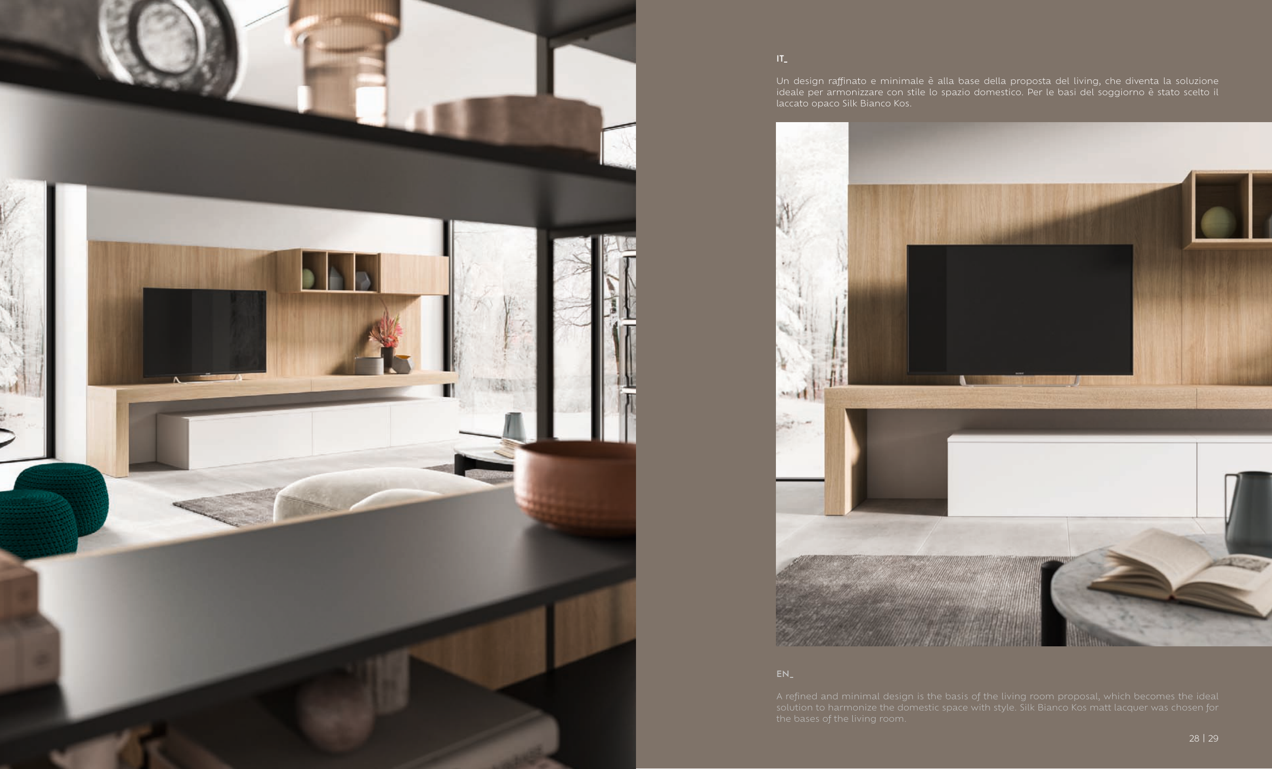 solution to harmonize the domestic space with style. Silk Bianco Kos matt lacquer was chosen for