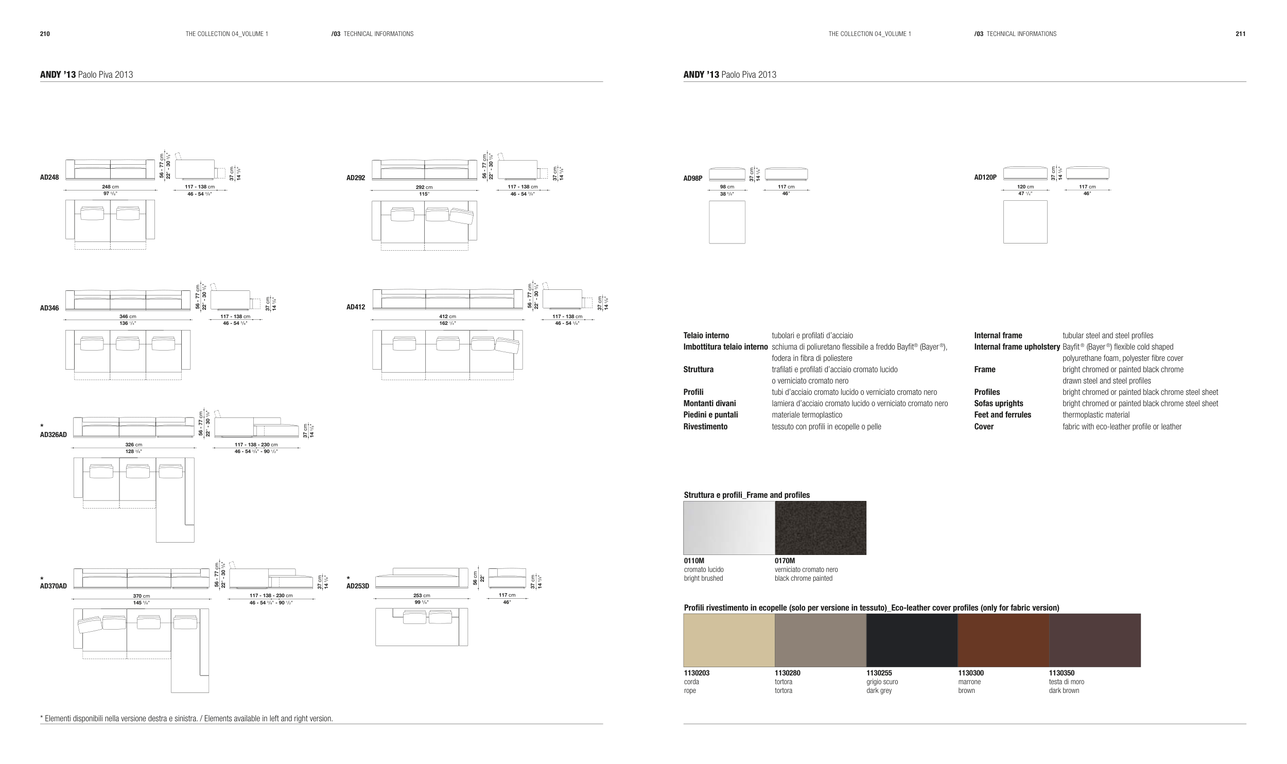 * Elementi disponibili nella versione destra e sinistra. / Elements available in left and right version.