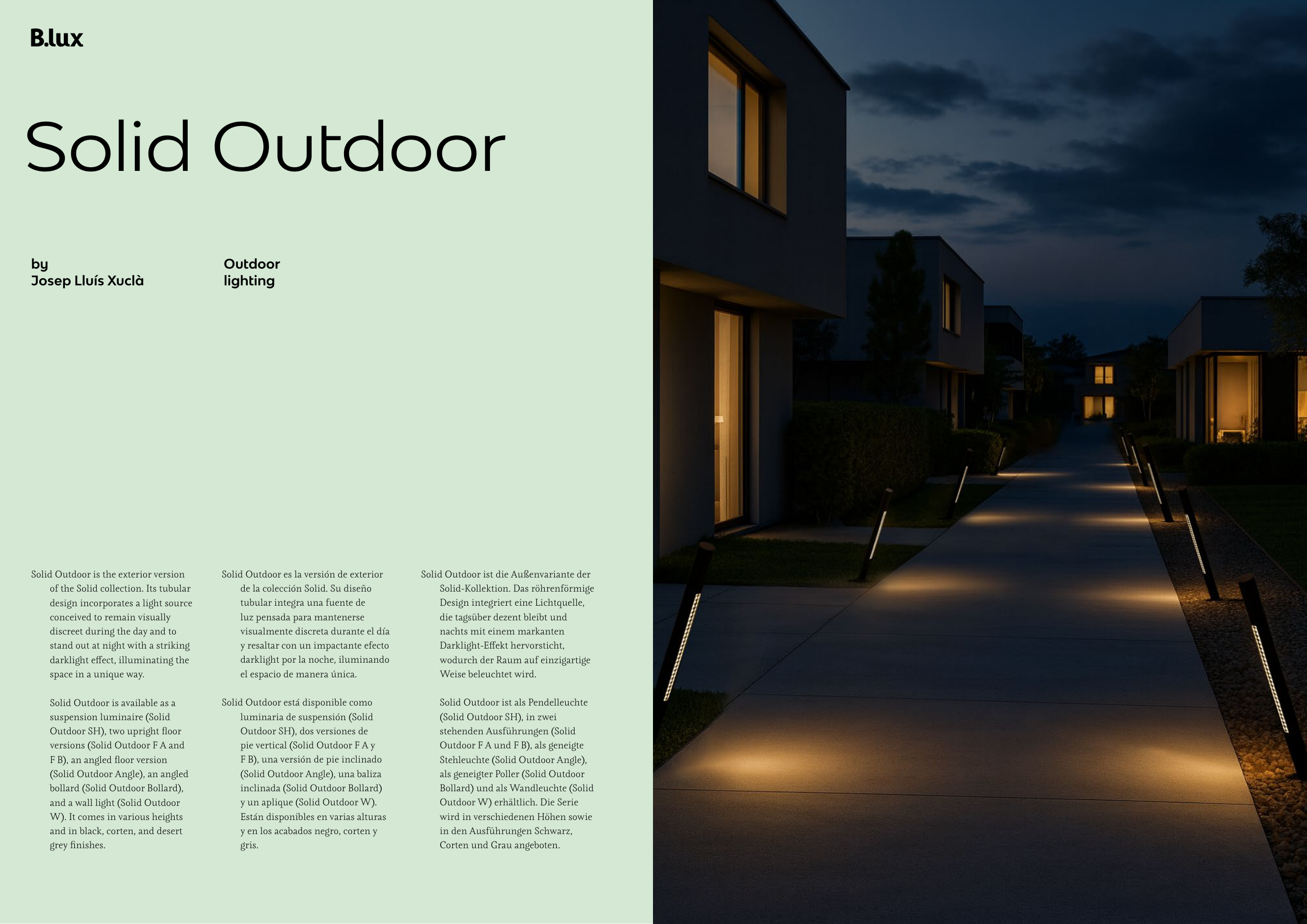 Bollard) und als Wandleuchte (Solid