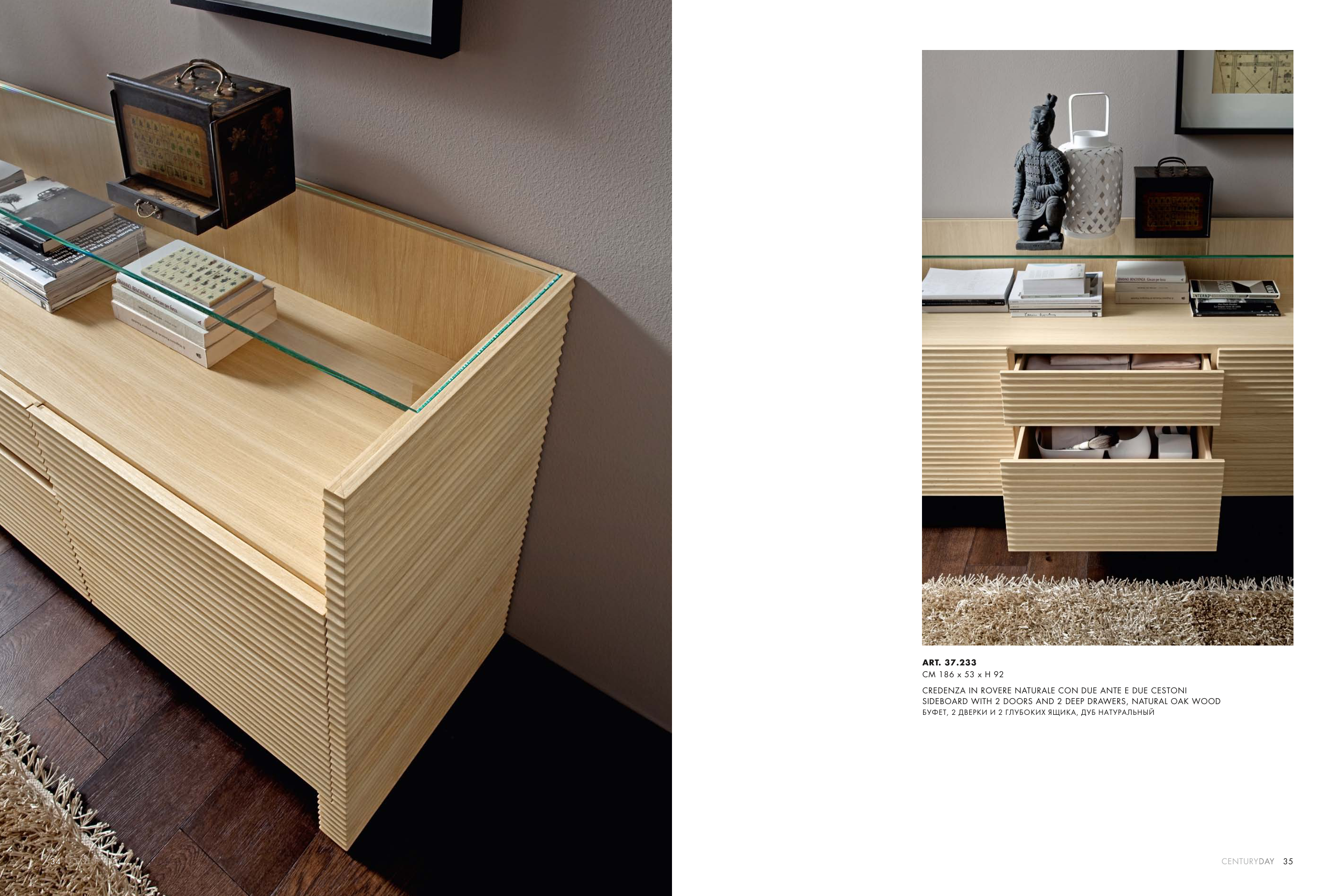 34 35 ART. 37.233 CM 186 x 53 x H 92 CREDENZA IN ROVERE NATURALE CON DUE ANTE E DUE CESTONI SIDEBOARD WITH 2 DOORS AND 2 DEEP DRAWERS, NATURAL OAK WOOD БУФЕТ, 2 ДВЕРКИ И 2 ГЛУБОКИХ ЯЩИКА, ДУБ НАТУРАЛЬНЫЙ