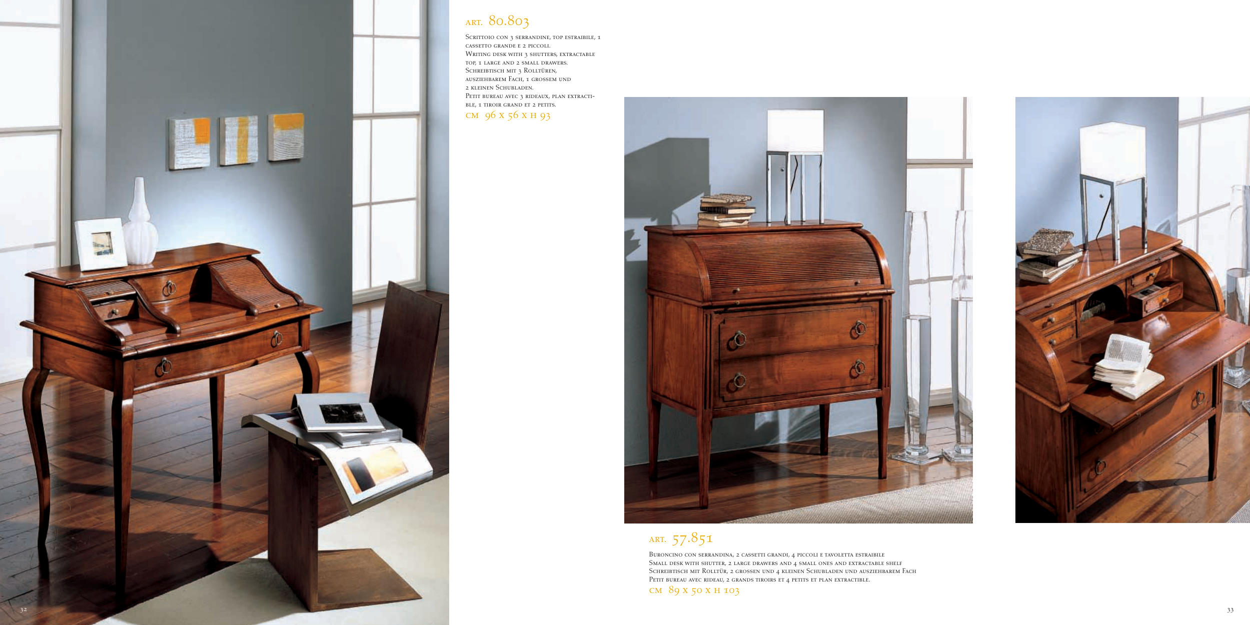 Writing desk with 3 shutters, extractable