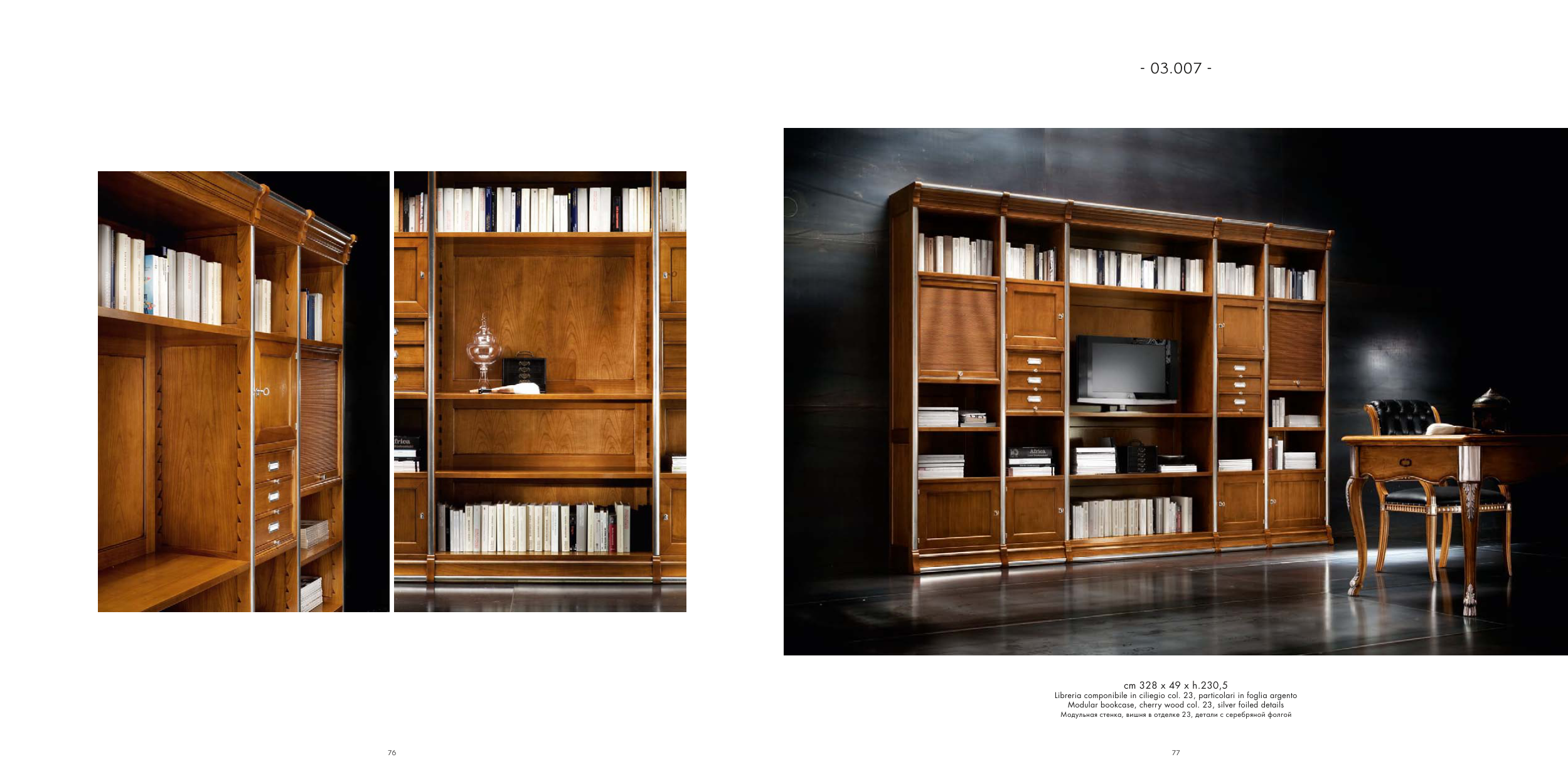 Modular bookcase, cherry wood col. 23, silver foiled details