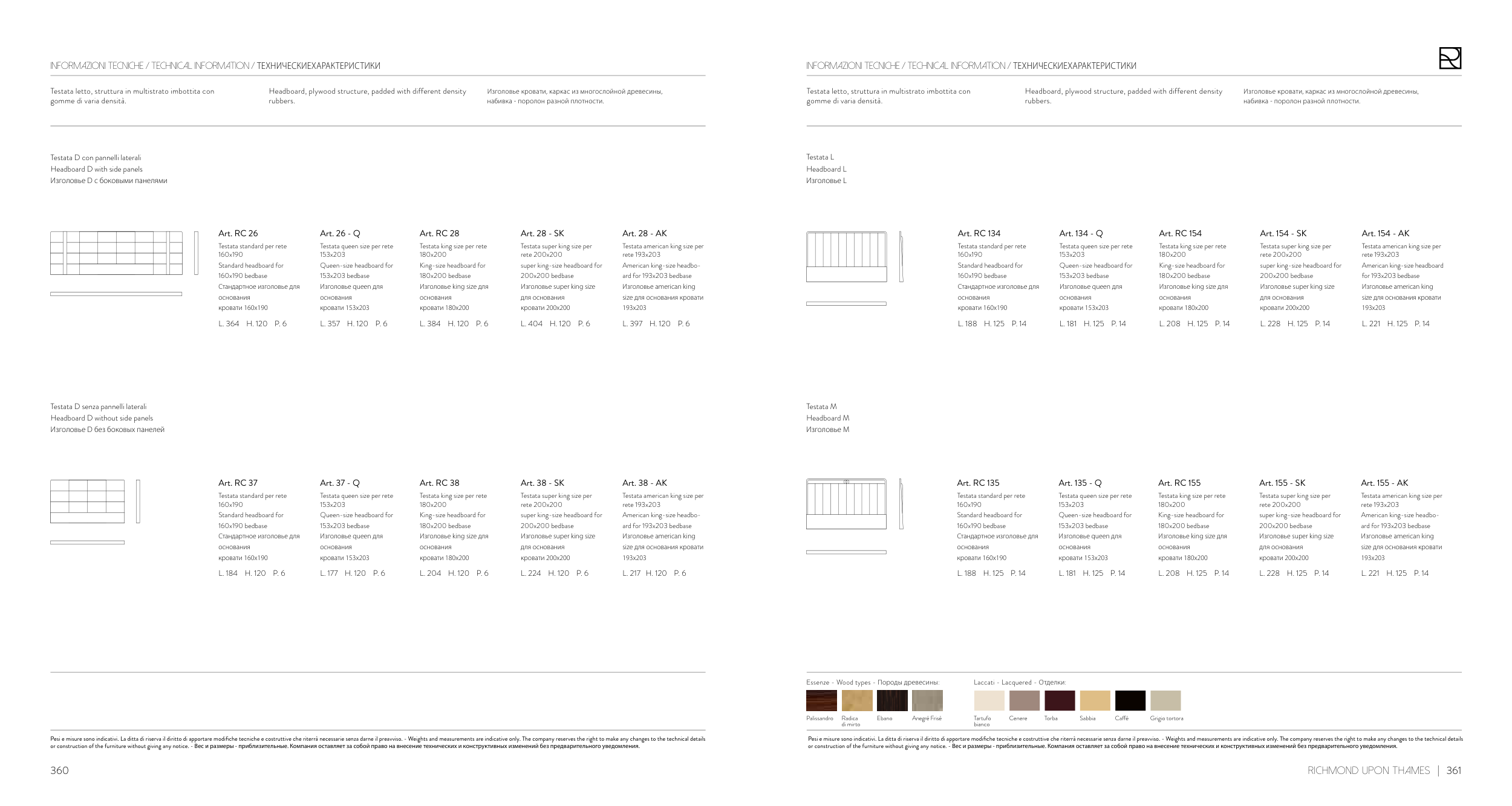Pesi e misure sono indicativi. La ditta di riserva il diritto di apportare modifiche tecniche e costruttive che riterrà necessarie senza darne il preavviso. - Weights and measurements are indicative only. The company reserves the right to make any changes to the technical details