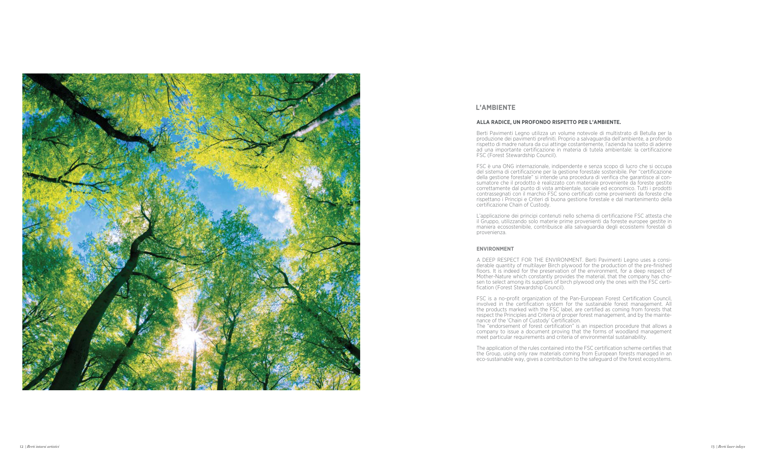 A DEEP RESPECT FOR THE ENVIRONMENT. Berti Pavimenti Legno uses a consi-