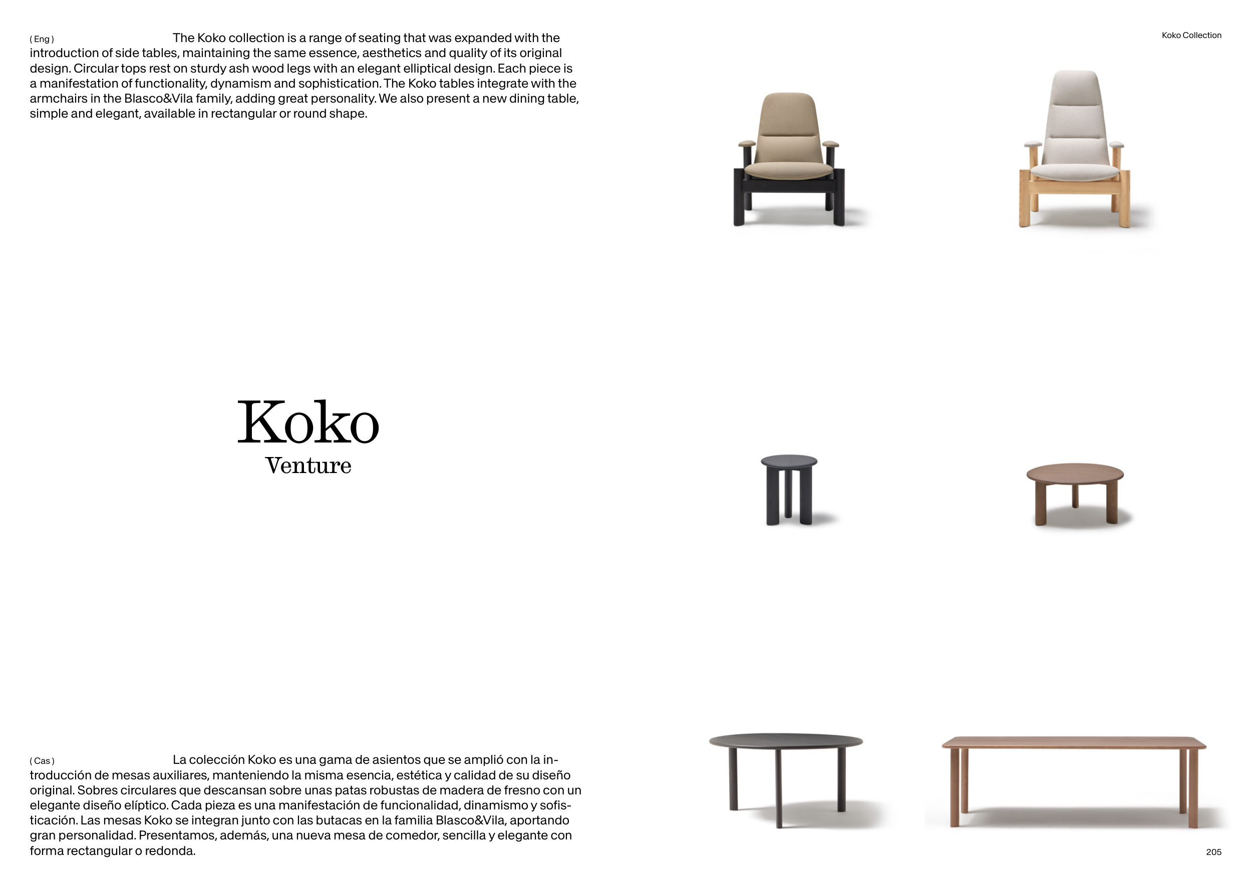 ticación. Las mesas Koko se integran junto con las butacas en la familia Blasco&Vila, aportando