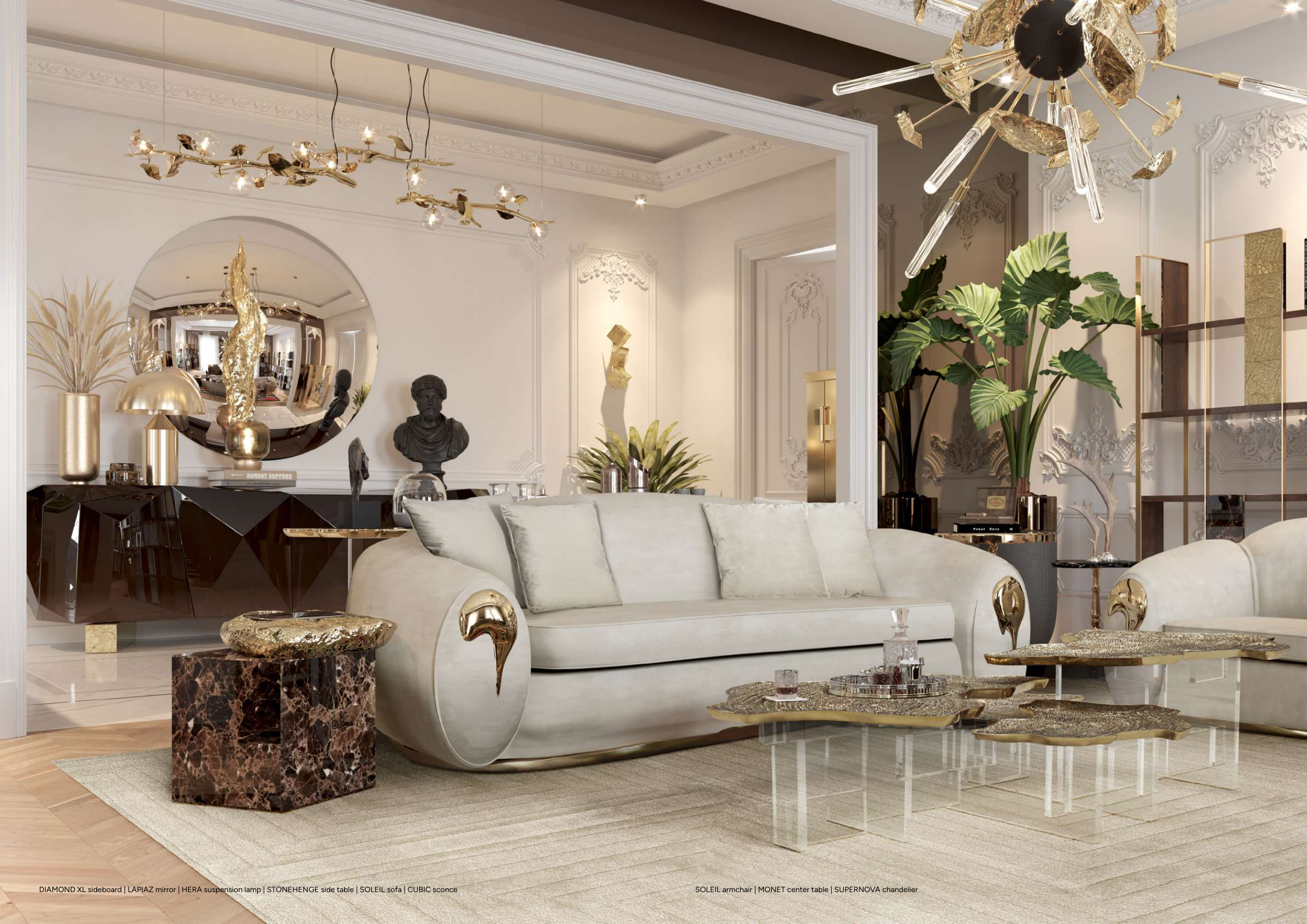 SOLEIL armchair | MONET center table | SUPERNOVA chandelier