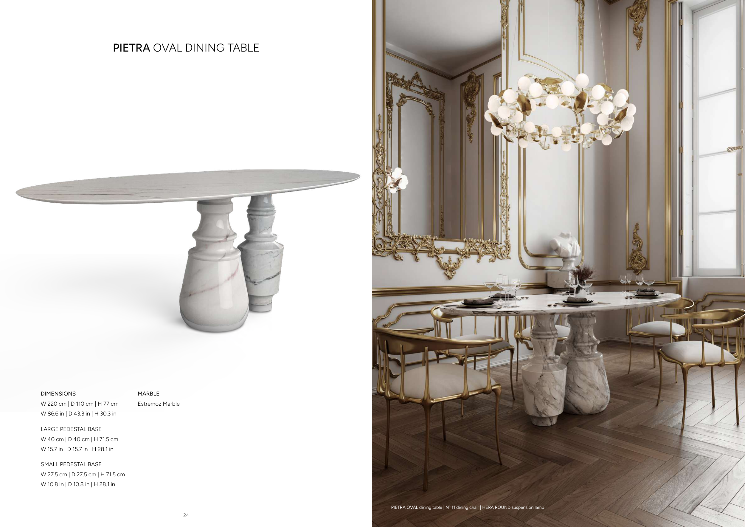 PIETRA OVAL dining table | Nº 11 dining chair | HERA ROUND suspension lamp