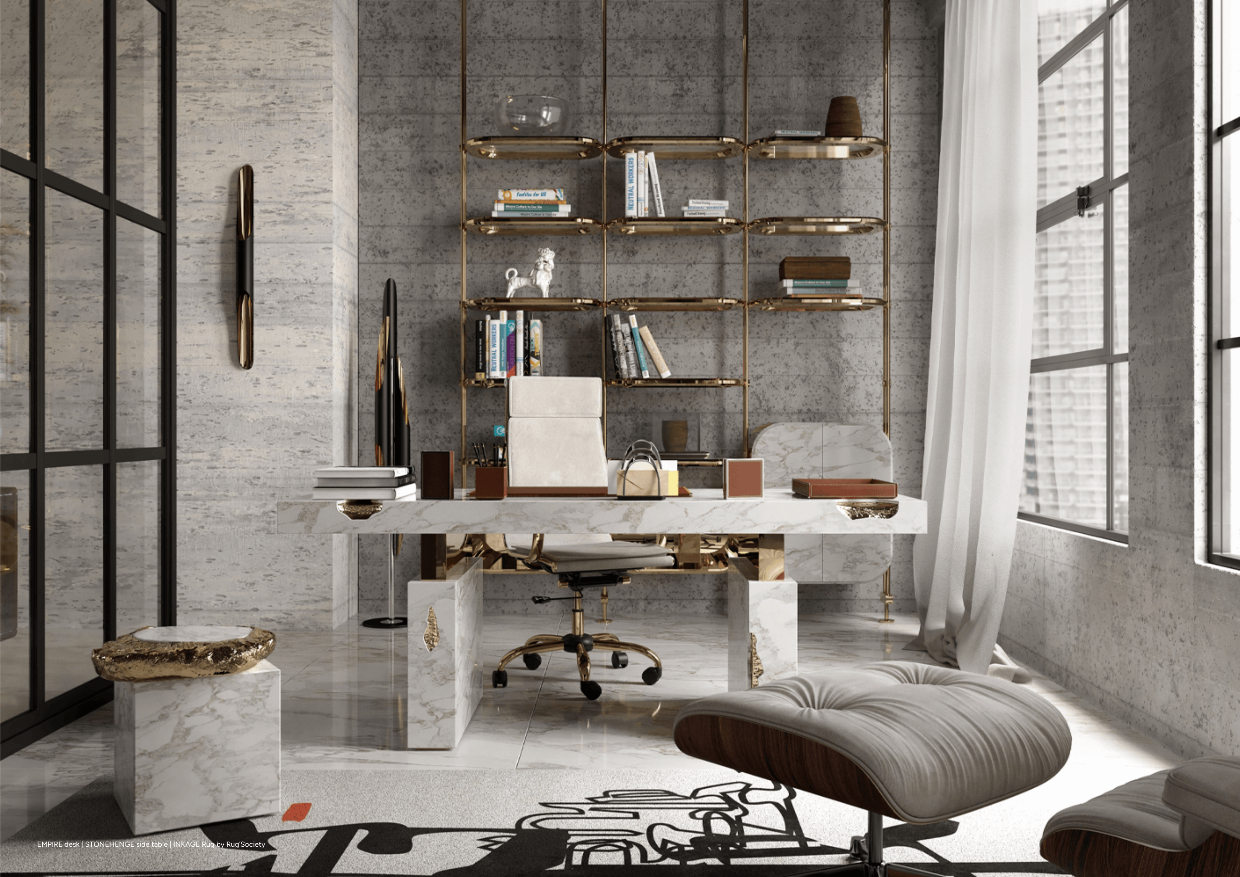 EMPIRE desk | STONEHENGE side table | INKAGE Rug by Rug’Society