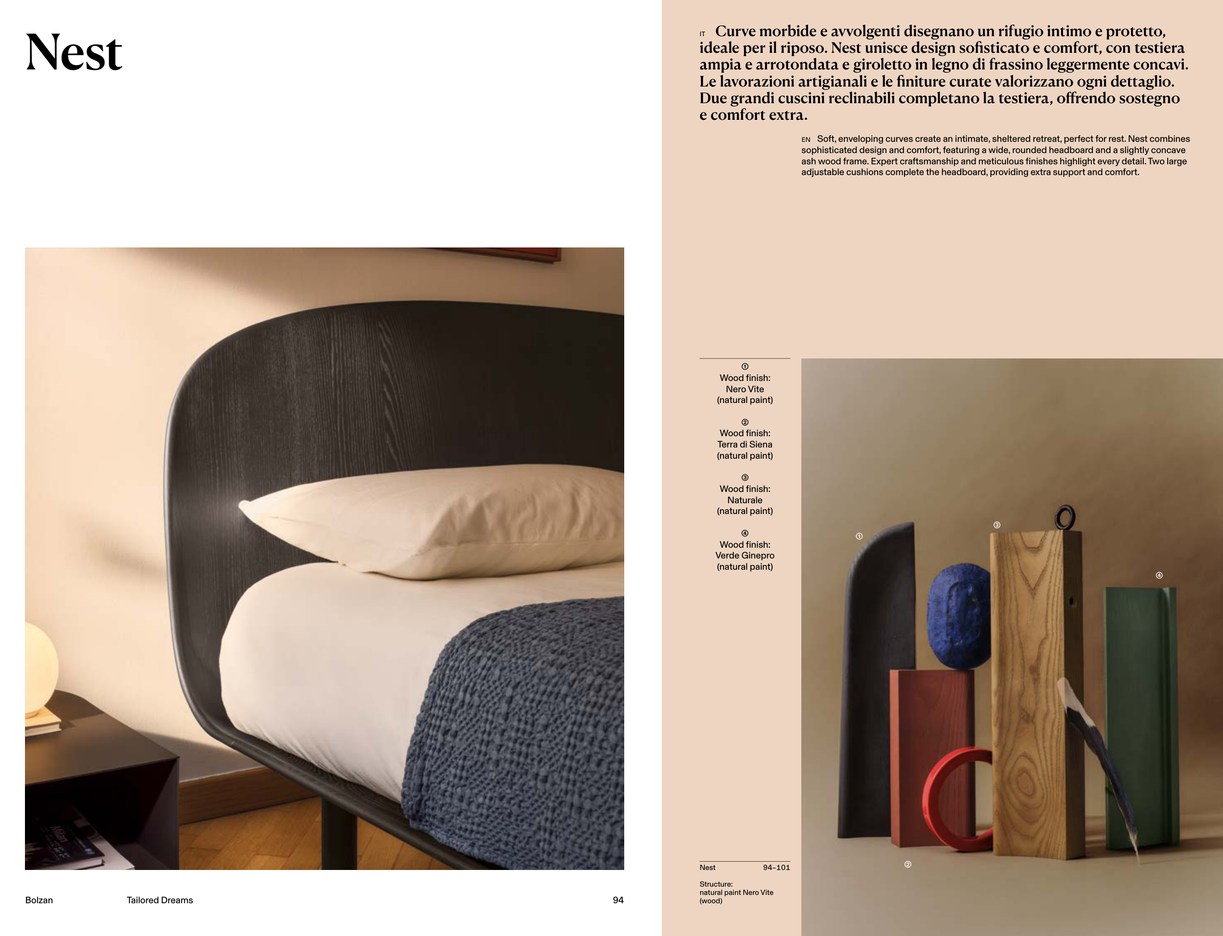 ideale per il riposo. Nest unisce design sofisticato e comfort, con testiera
