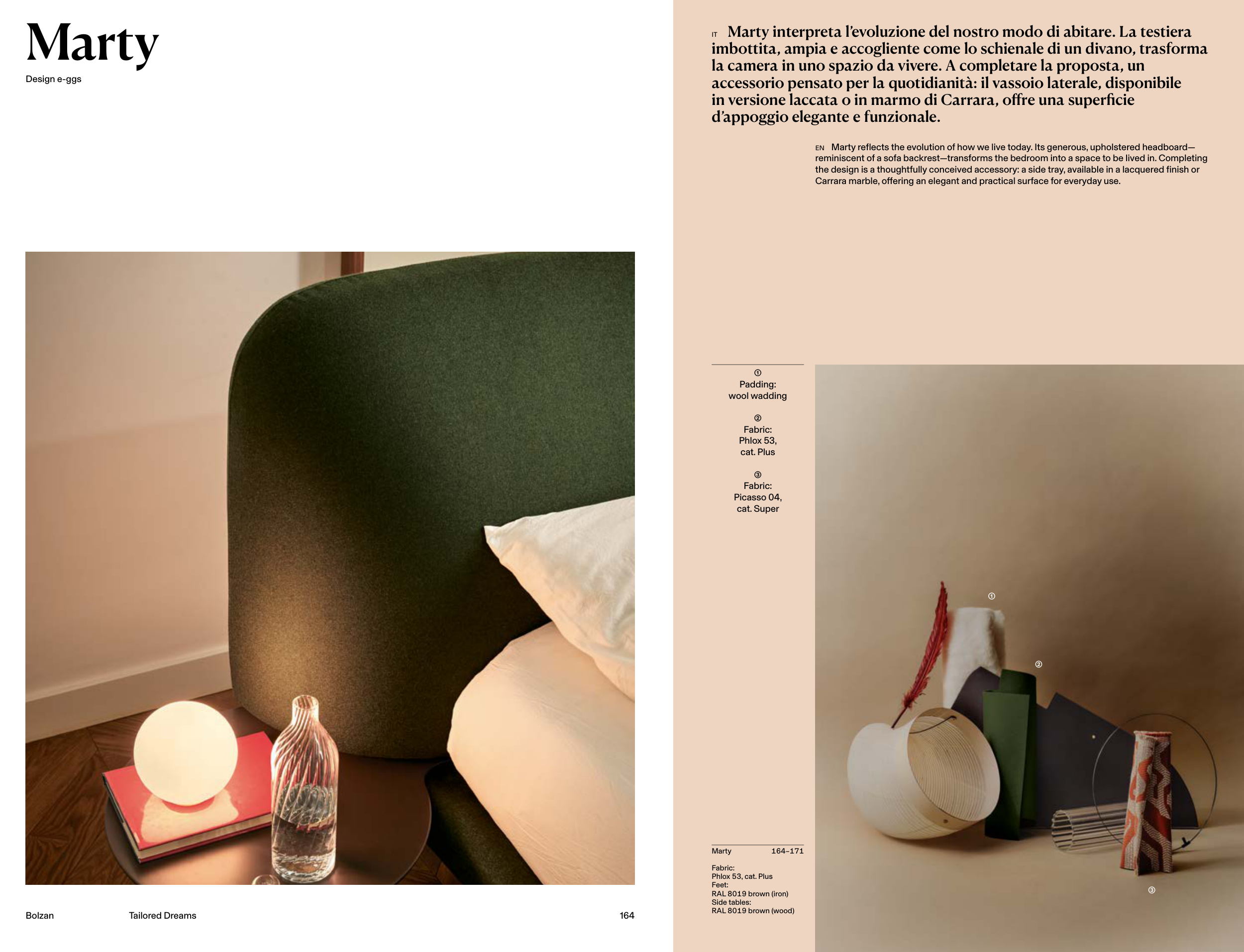 EN Marty reflects the evolution of how we live today. Its generous, upholstered headboard—