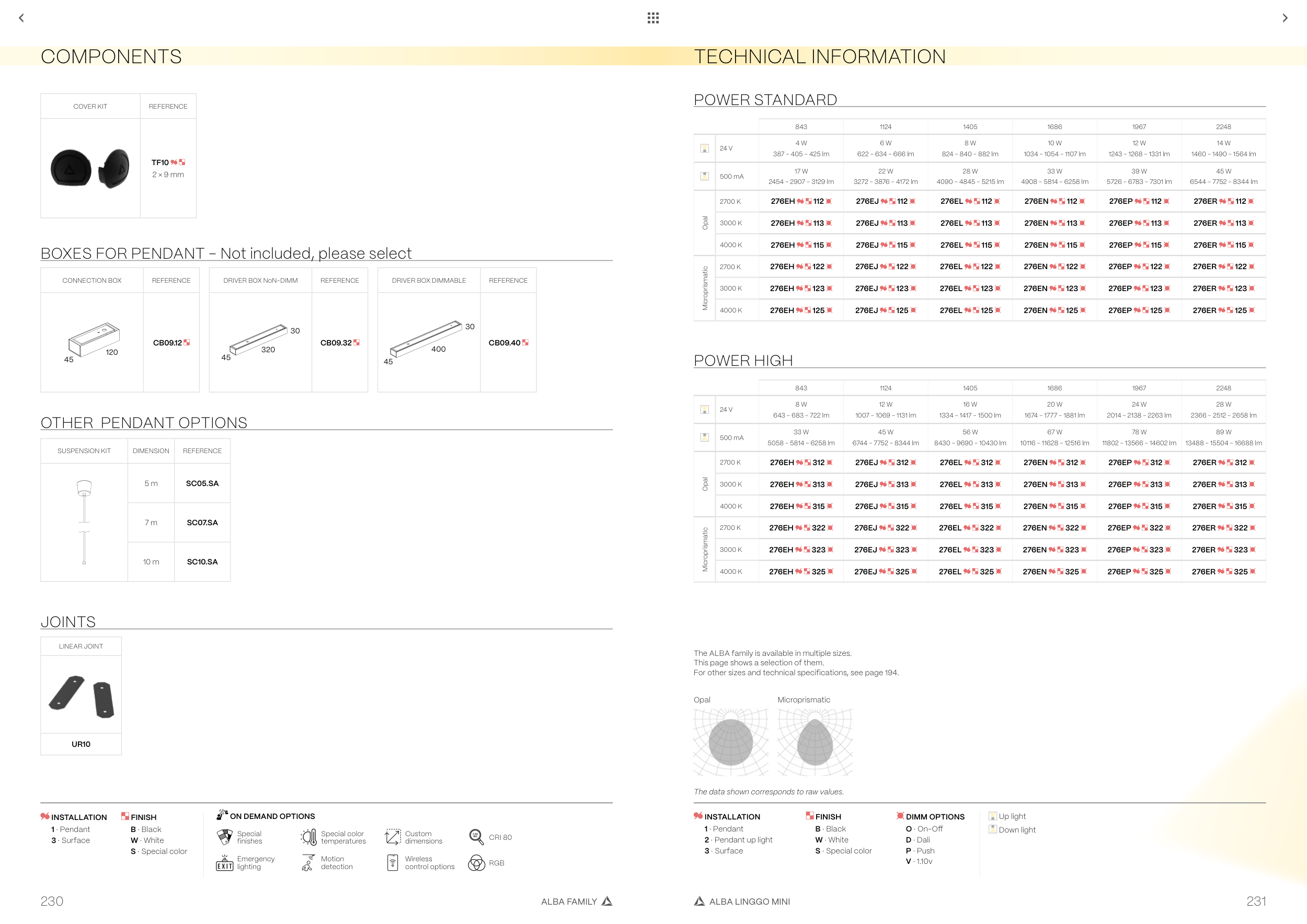 For other sizes and technical specifications, see page 194.