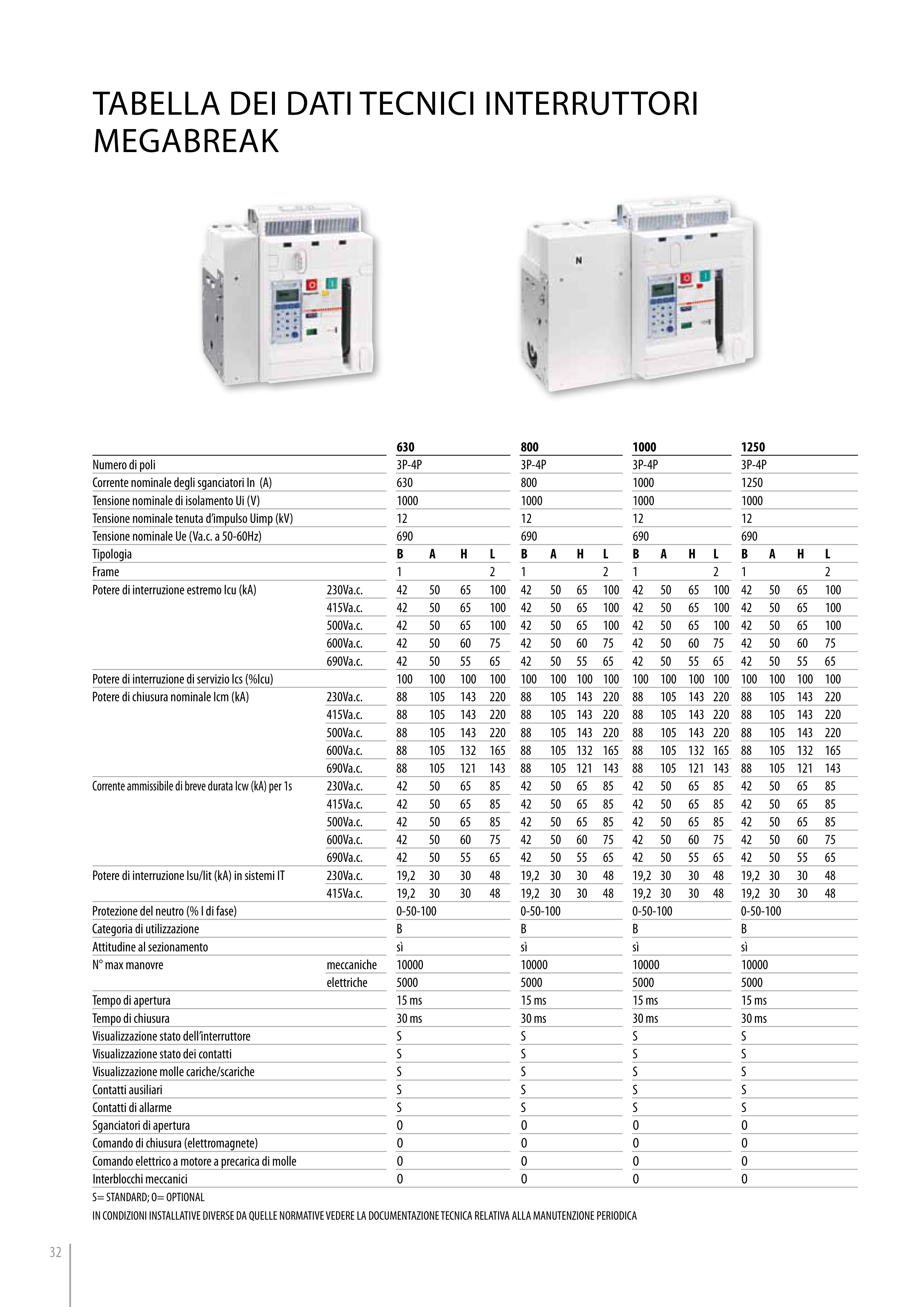 TaBElla DEI DaTI TECNICI INTERRUTTORI