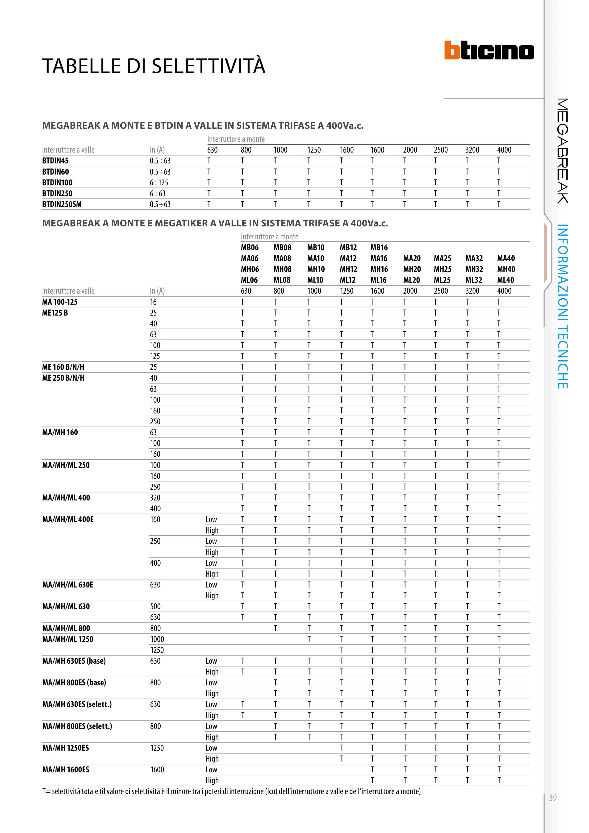 meGabreak a monTe e meGaTiker a Valle in sisTema Trifase a 400Va.c.