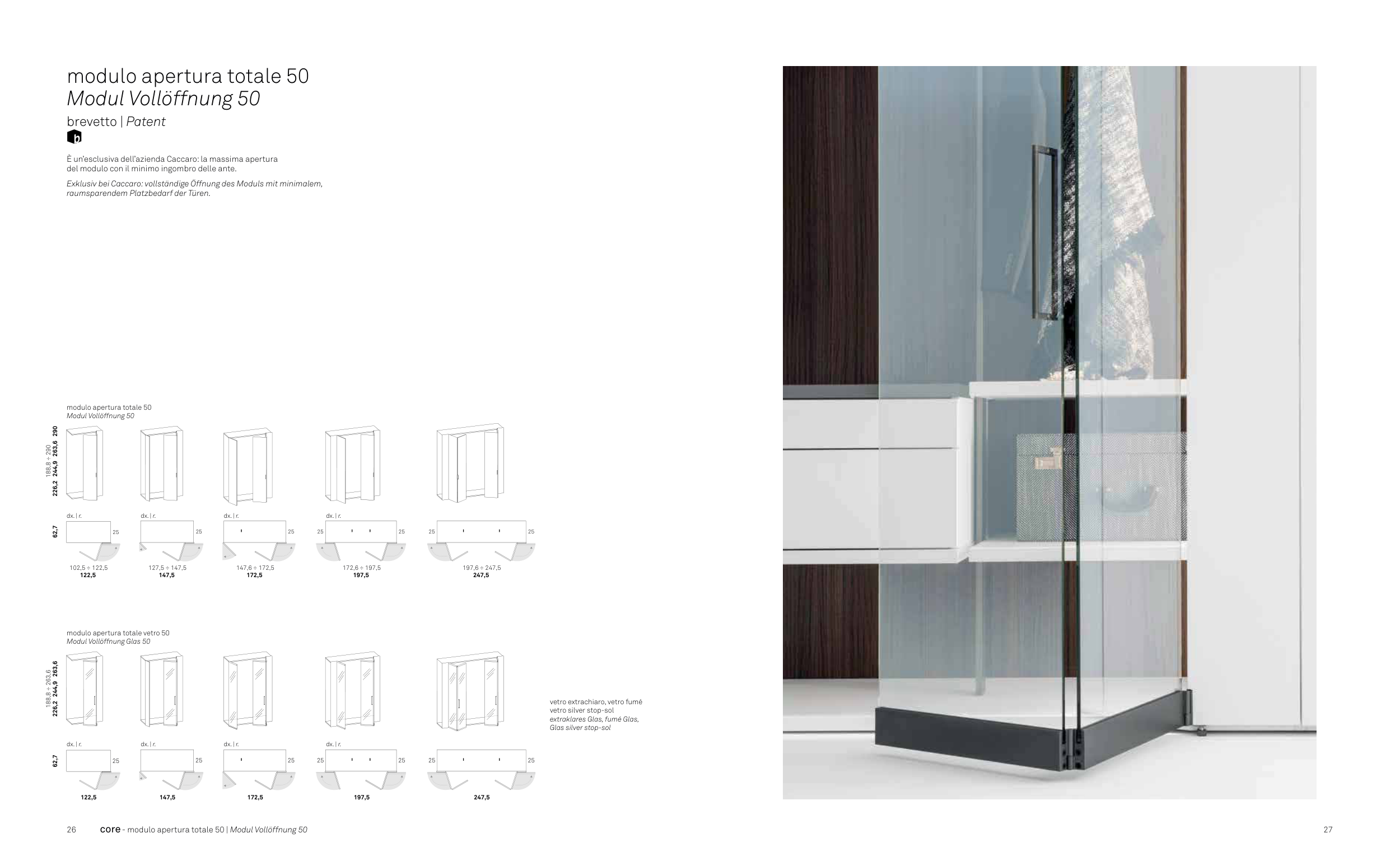 Exklusiv bei Caccaro: vollständige Öffnung des Moduls mit minimalem,