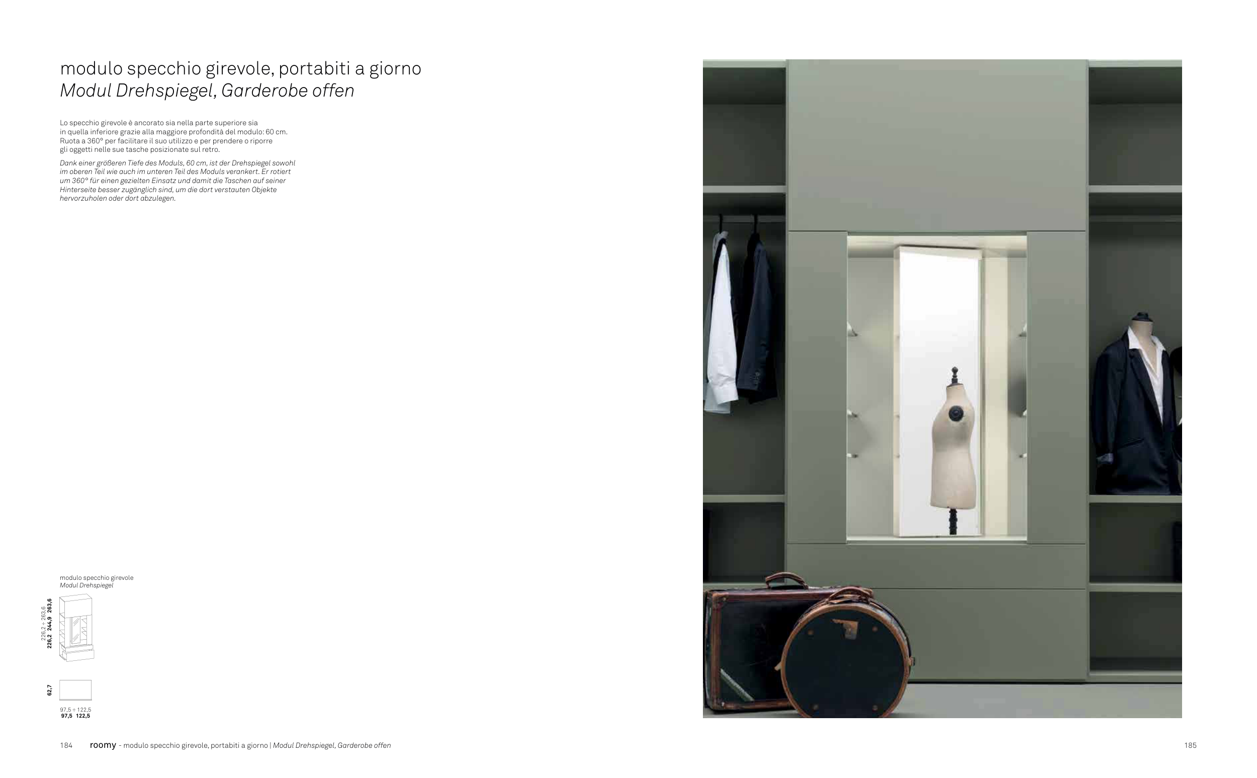 modulo specchio girevole, portabiti a giorno