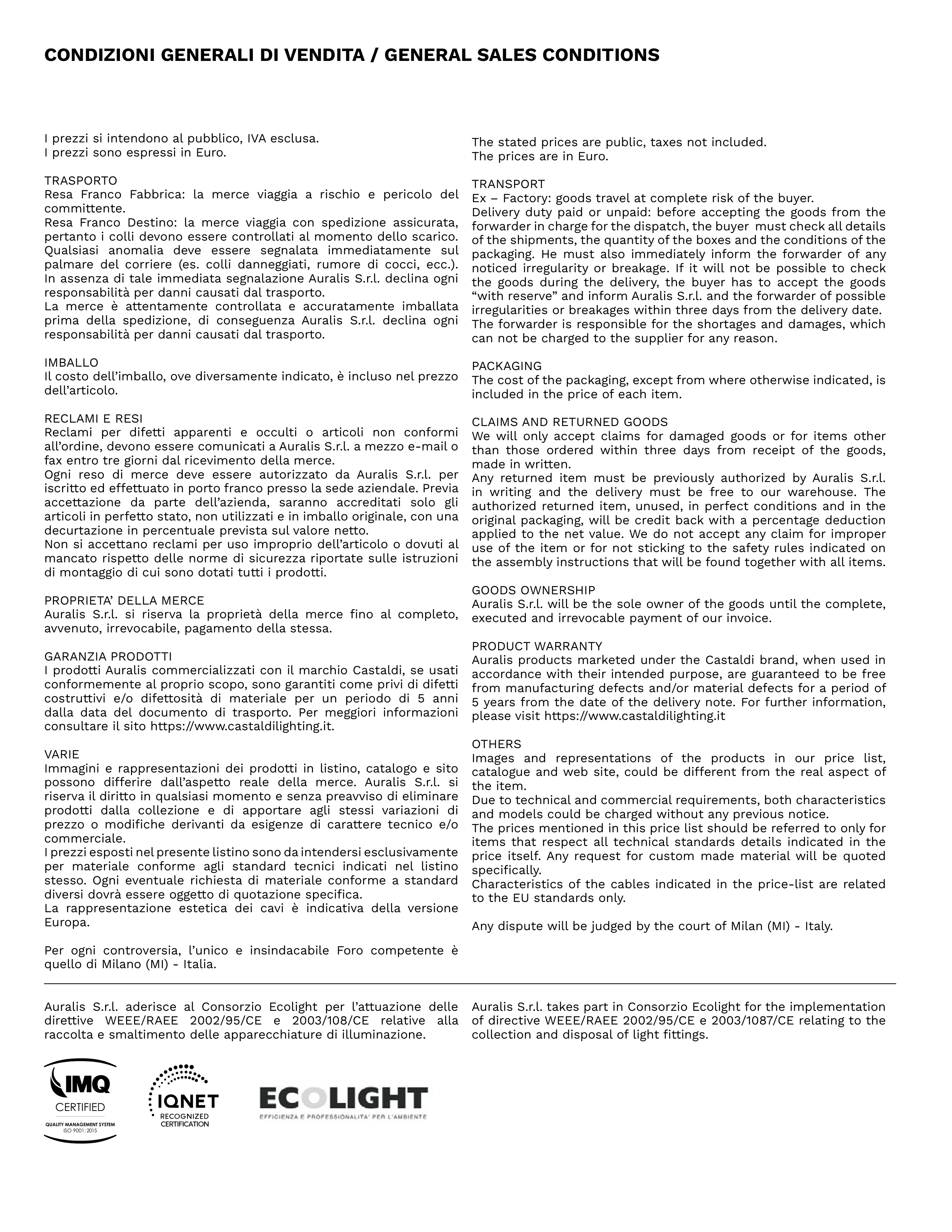 CONDIZIONI GENERALI DI VENDITA / GENERAL SALES CONDITIONS