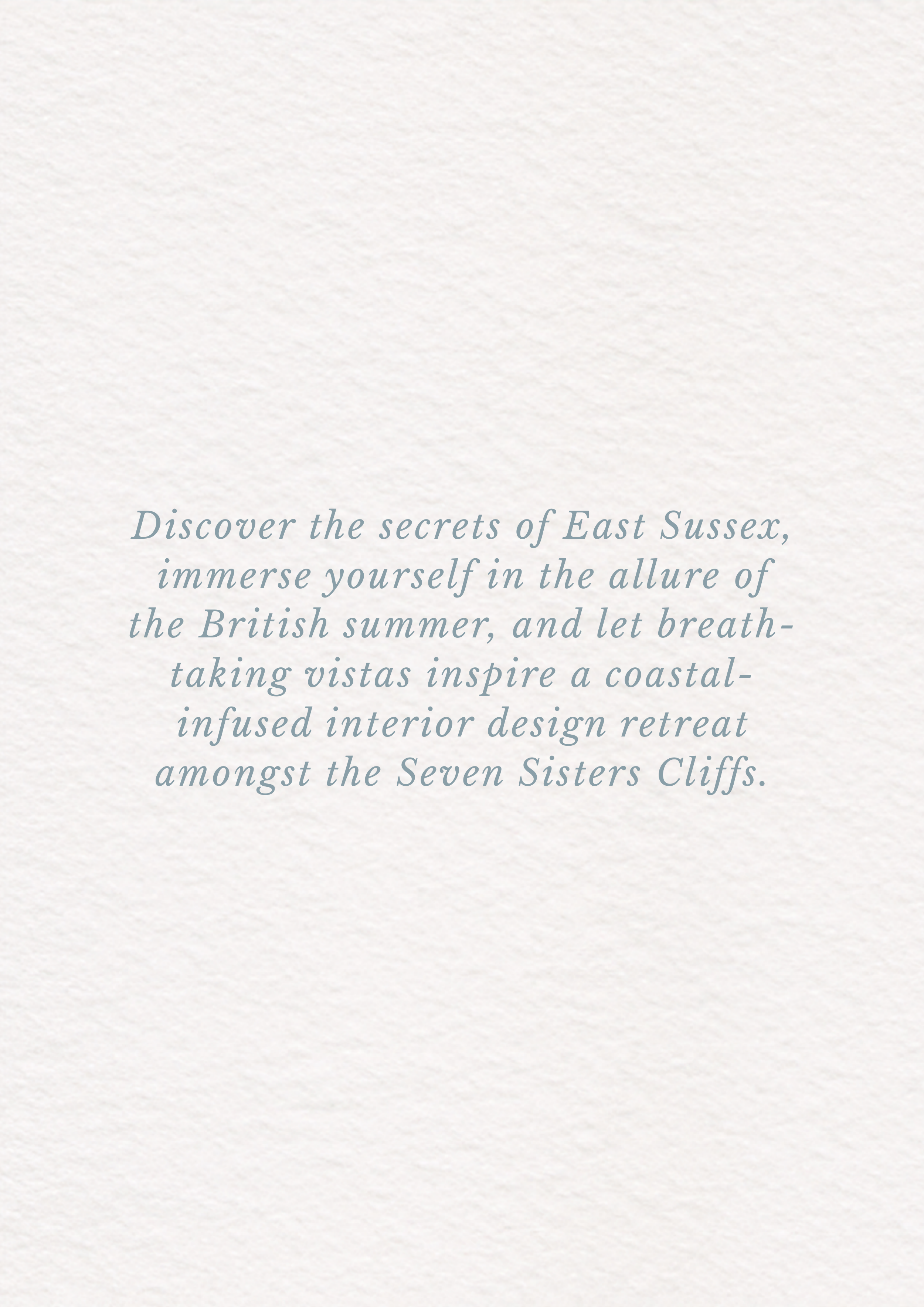 Discover the secrets of East Sussex, immerse yourself in the allure of the British summer, and let breath- taking vistas inspire a coastal- infused interior design retreat amongst the Seven Sisters Cliffs.
