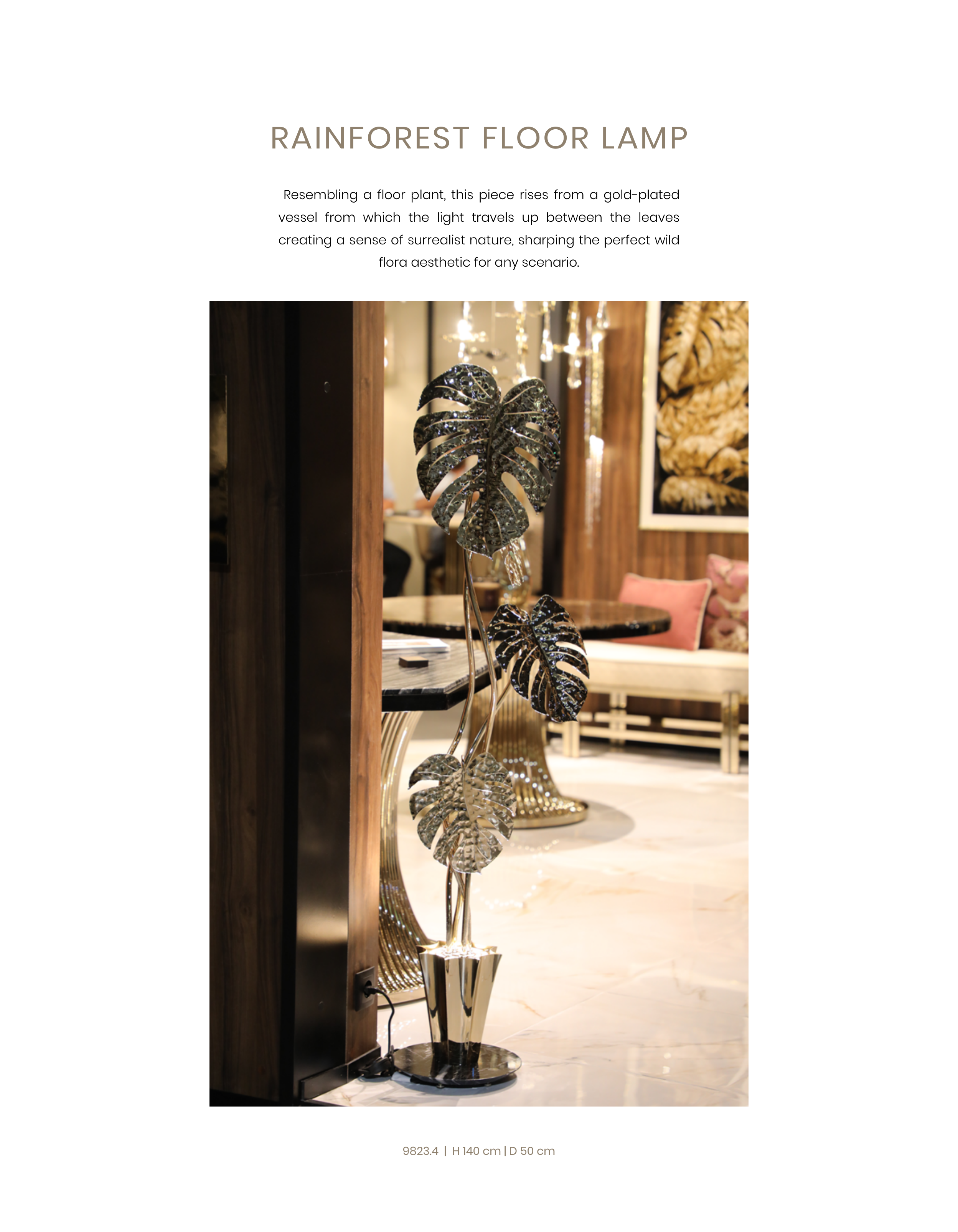 Resembling a floor plant, this piece rises from a gold-plated