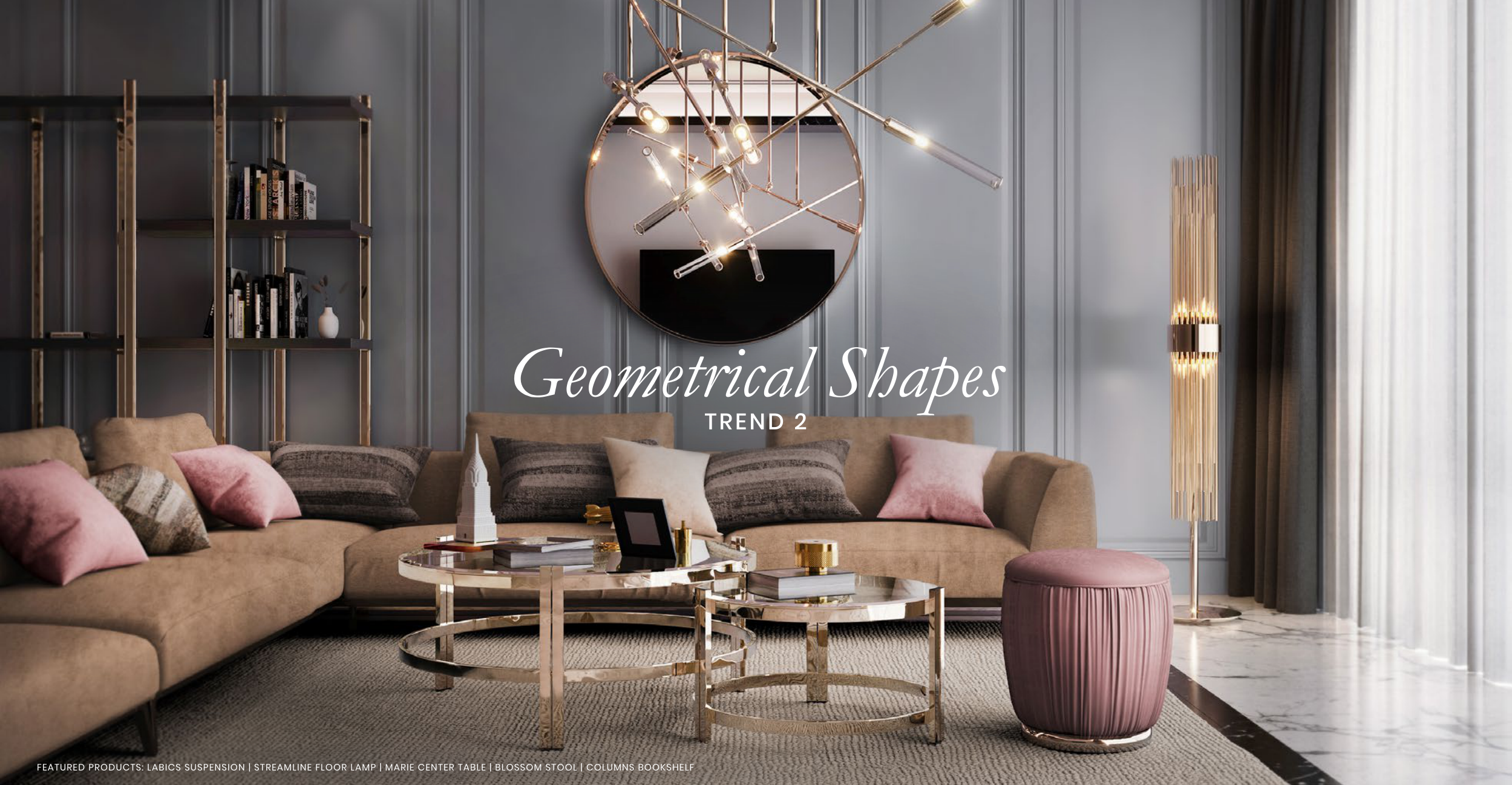 FEATURED PRODUCTS: LABICS SUSPENSION | STREAMLINE FLOOR LAMP | MARIE CENTER TABLE | BLOSSOM STOOL | COLUMNS BOOKSHELF