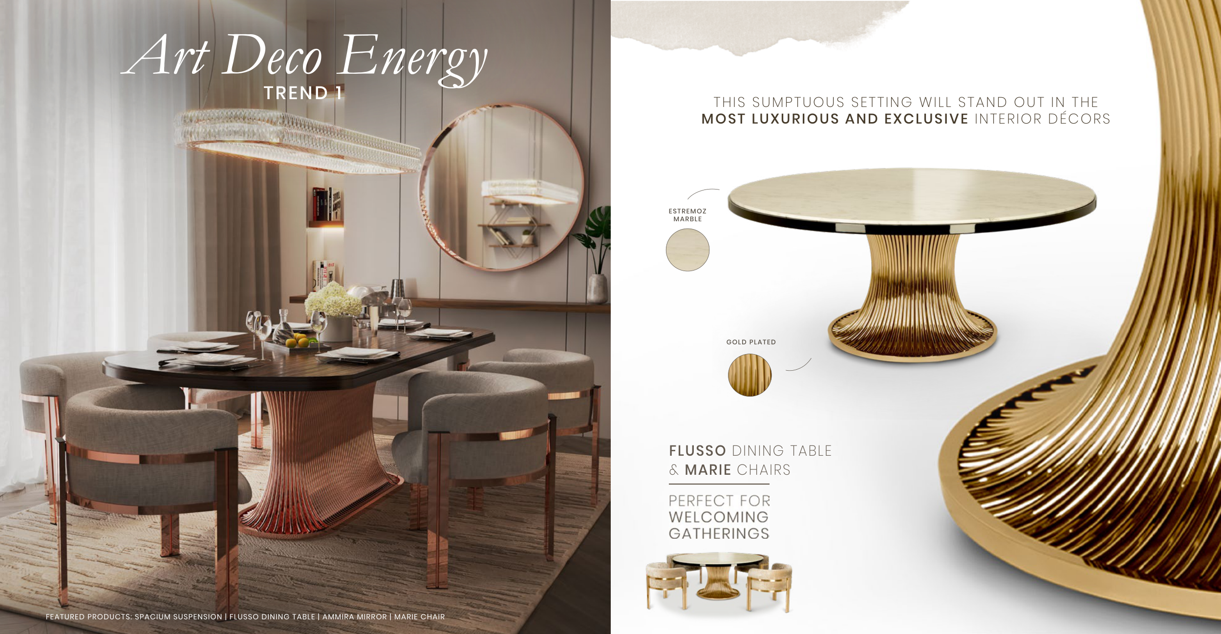 FEATURED PRODUCTS: SPACIUM SUSPENSION | FLUSSO DINING TABLE | AMMIRA MIRROR | MARIE CHAIR