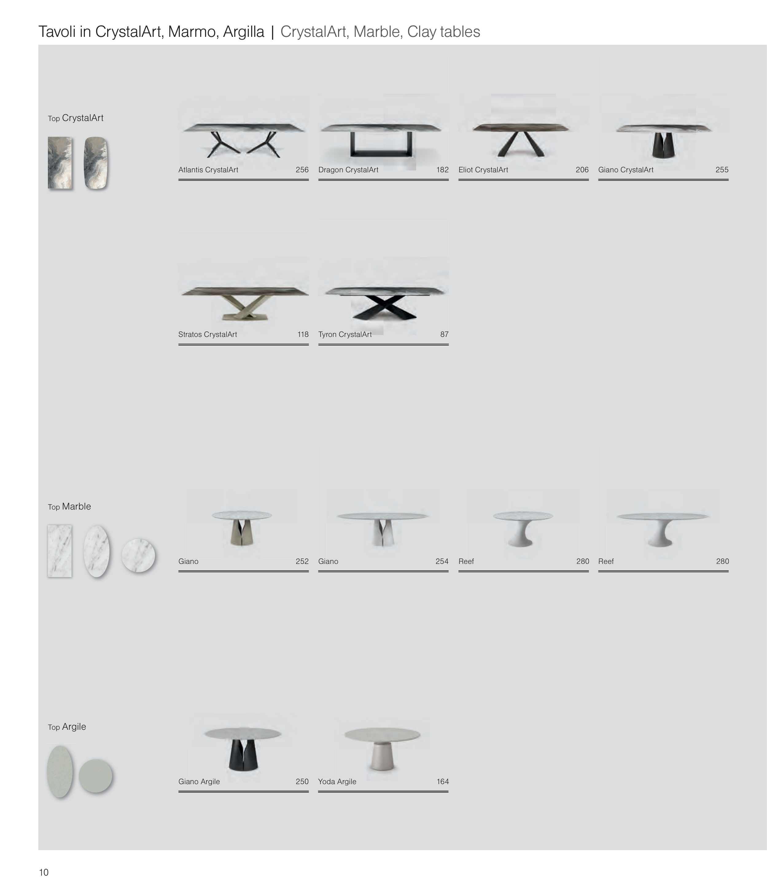 Tavoli in CrystalArt, Marmo, Argilla | CrystalArt, Marble, Clay tables