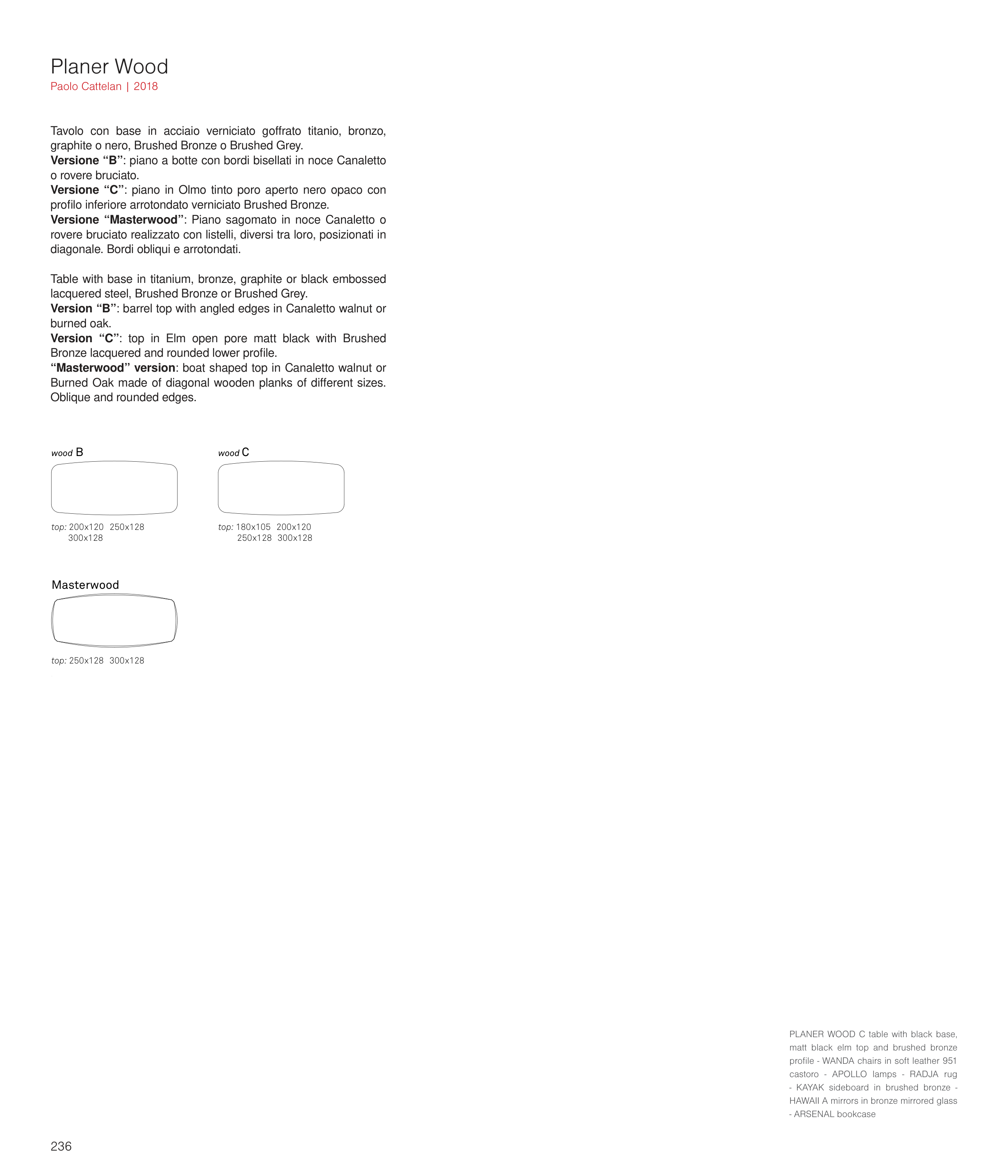 “Masterwood” version: boat shaped top in Canaletto walnut or