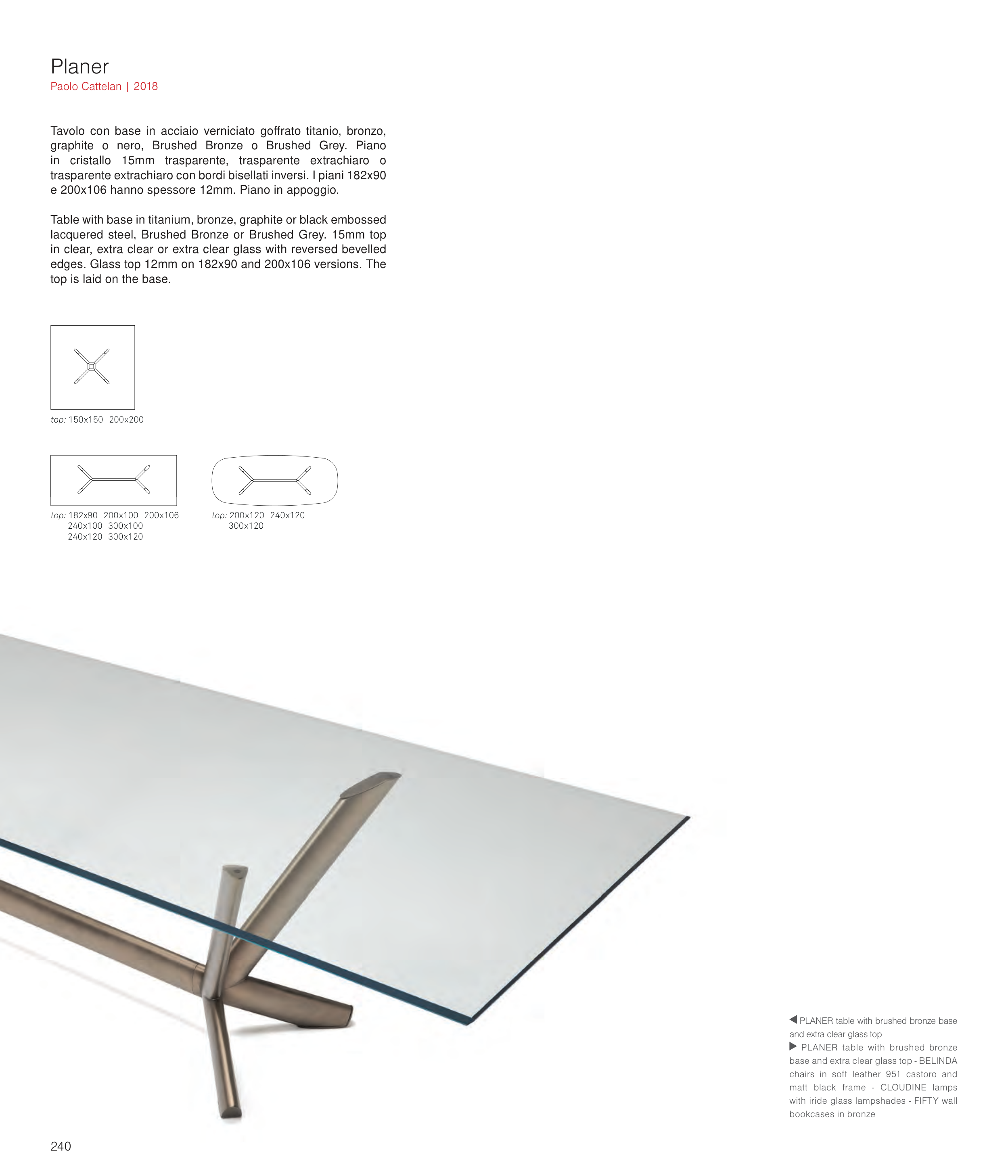 edges. Glass top 12mm on 182x90 and 200x106 versions. The