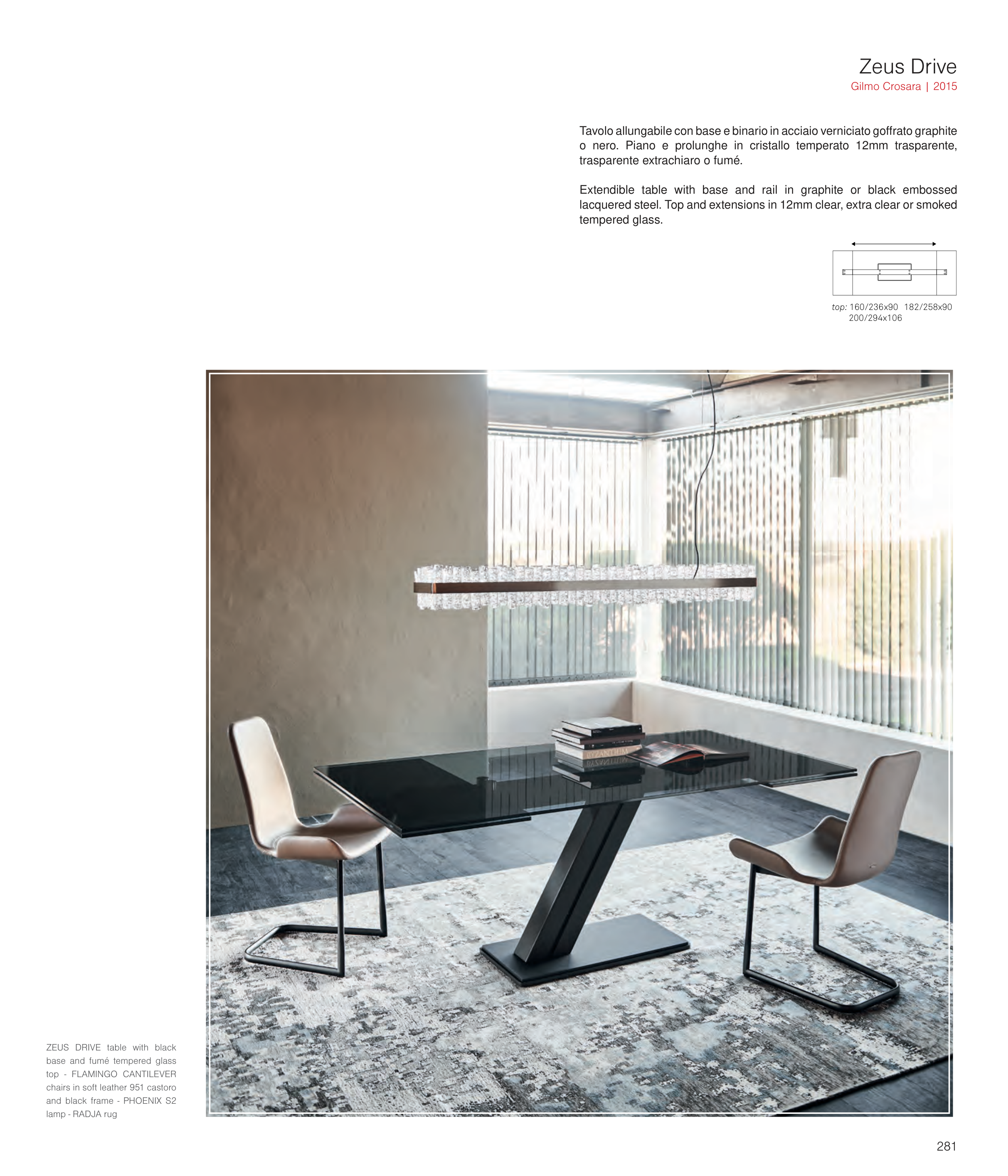 lacquered steel. Top and extensions in 12mm clear, extra clear or smoked