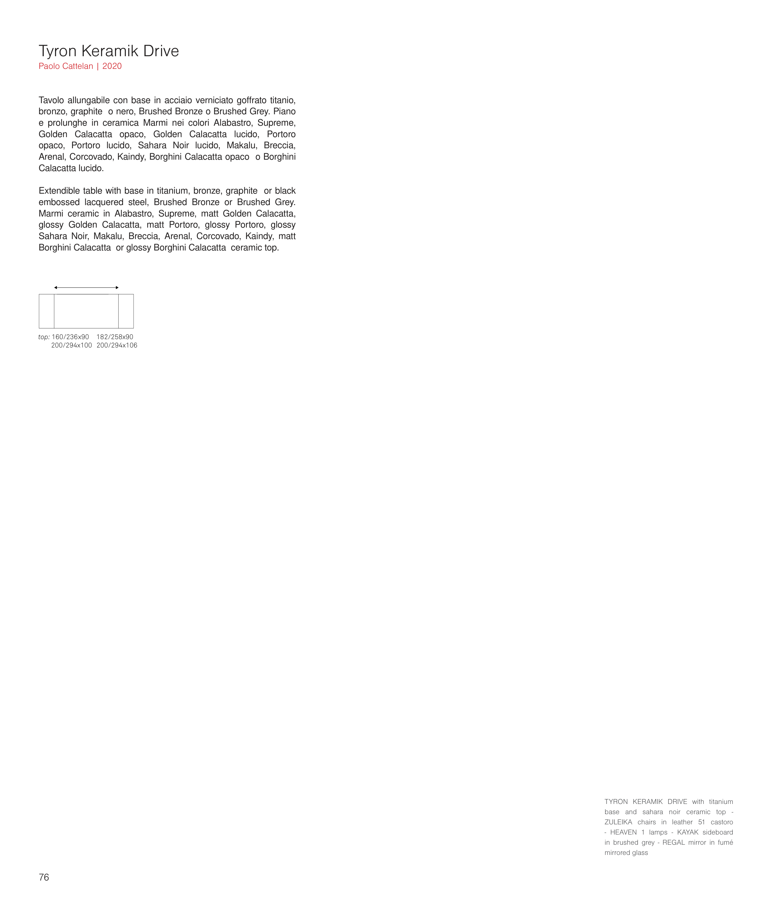 Extendible table with base in titanium, bronze, graphite or black