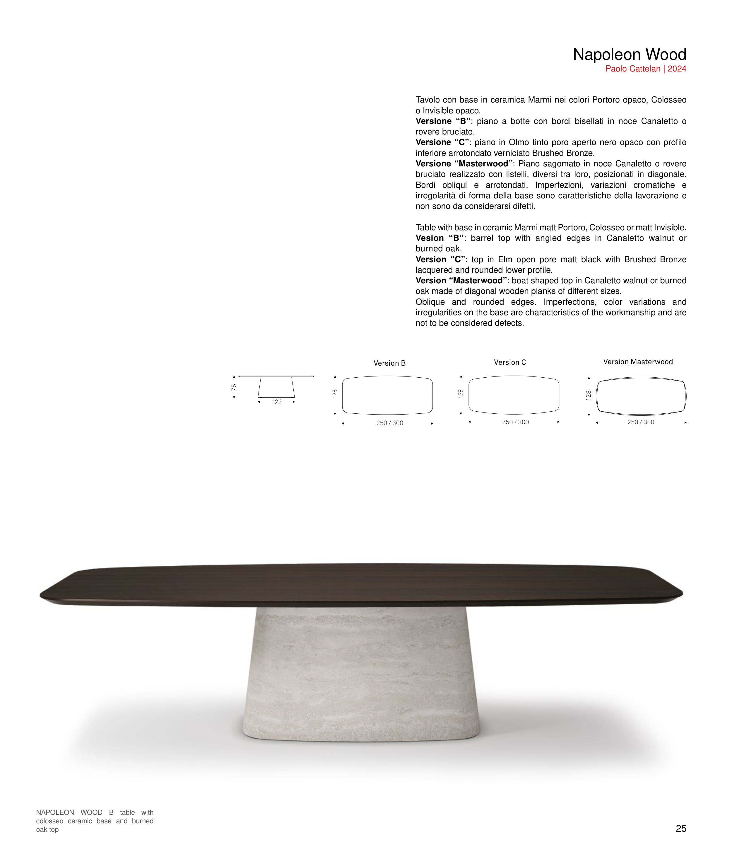 Version “Masterwood”: boat shaped top in Canaletto walnut or burned