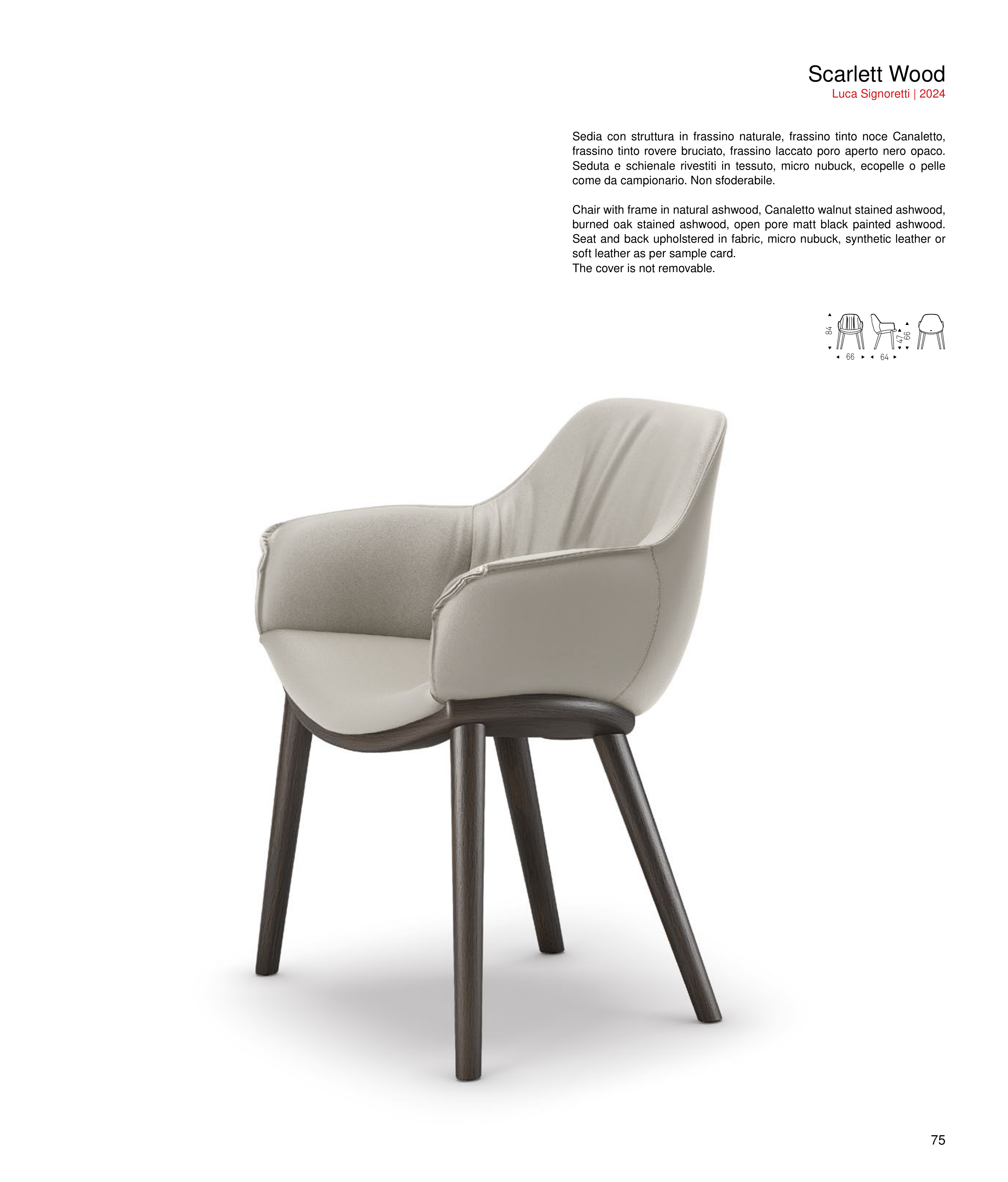 Chair with frame in natural ashwood, Canaletto walnut stained ashwood,