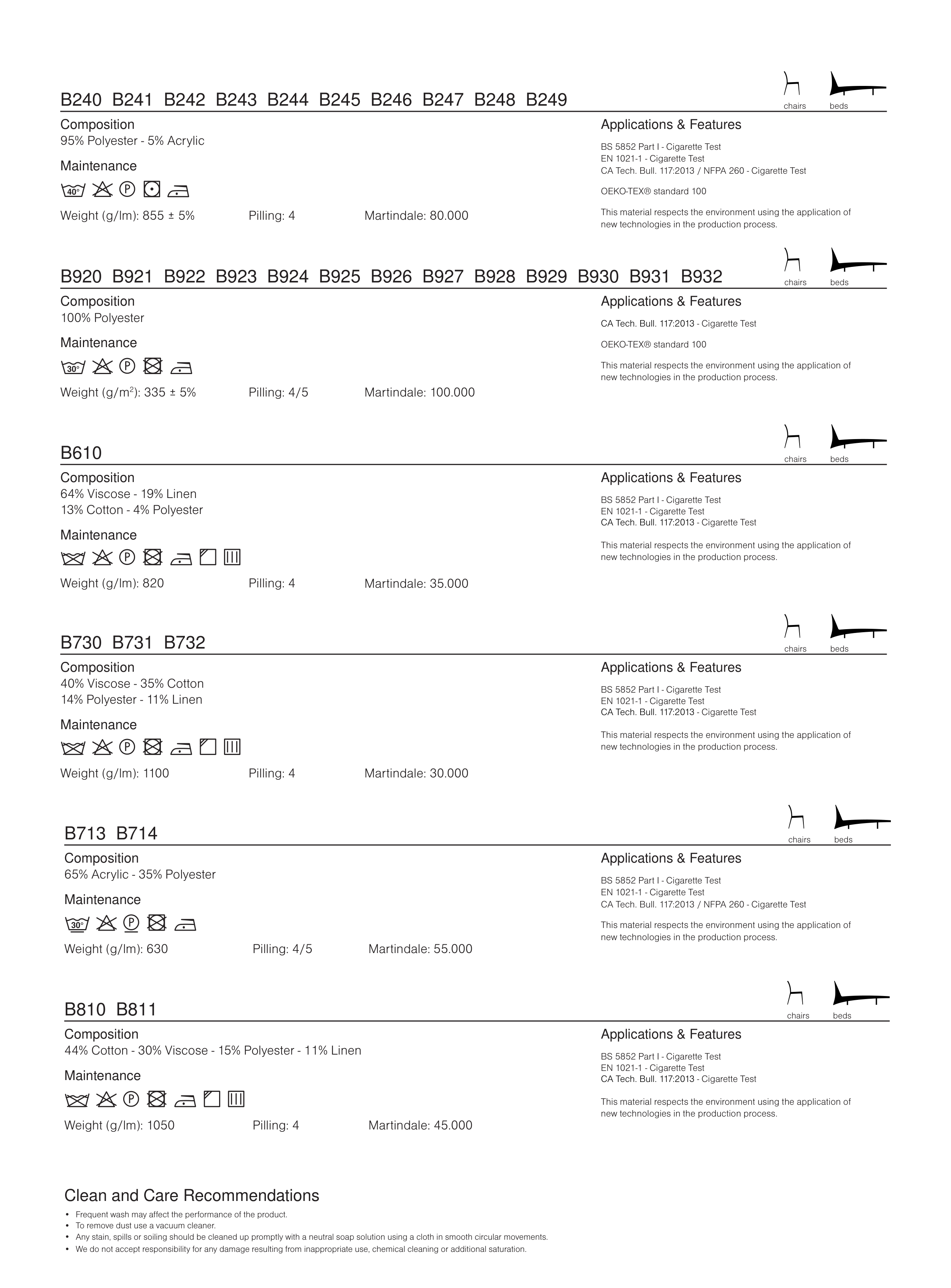 Clean and Care Recommendations