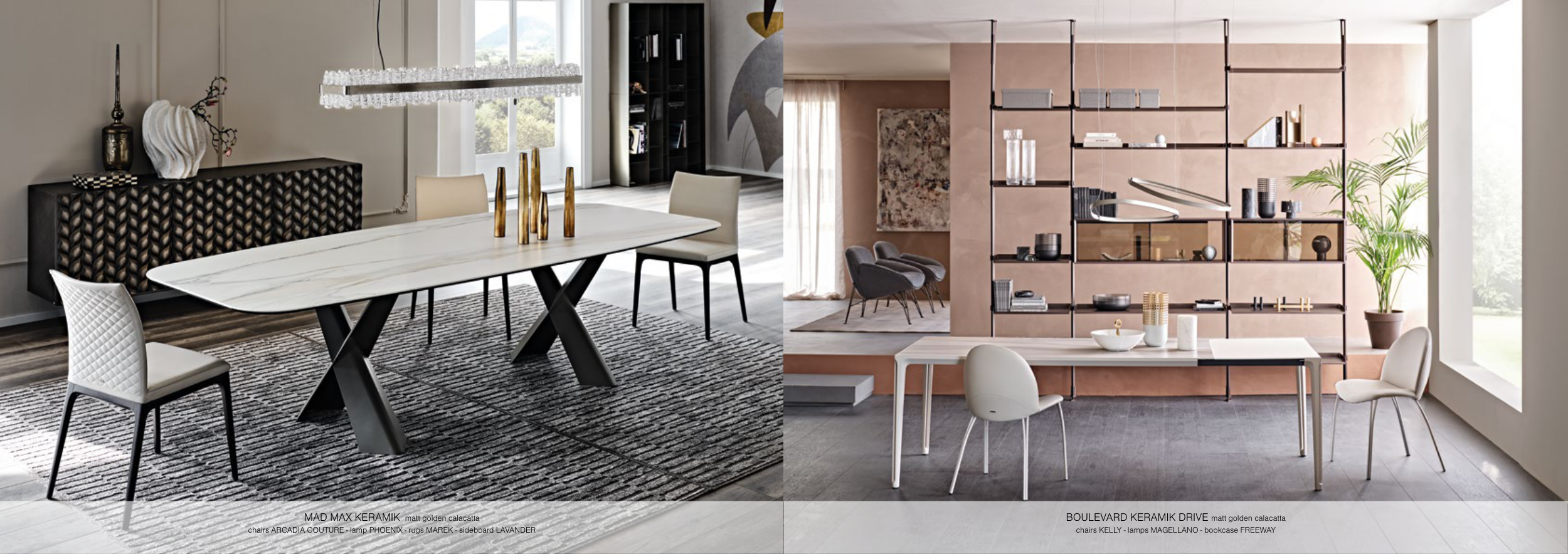 MAD MAX KERAMIK matt golden calacatta chairs ARCADIA COUTURE - lamp PHOENIX - rugs MAREK - sideboard LAVANDER BOULEVARD KERAMIK DRIVE matt golden calacatta chairs KELLY - lamps MAGELLANO - bookcase FREEWAY