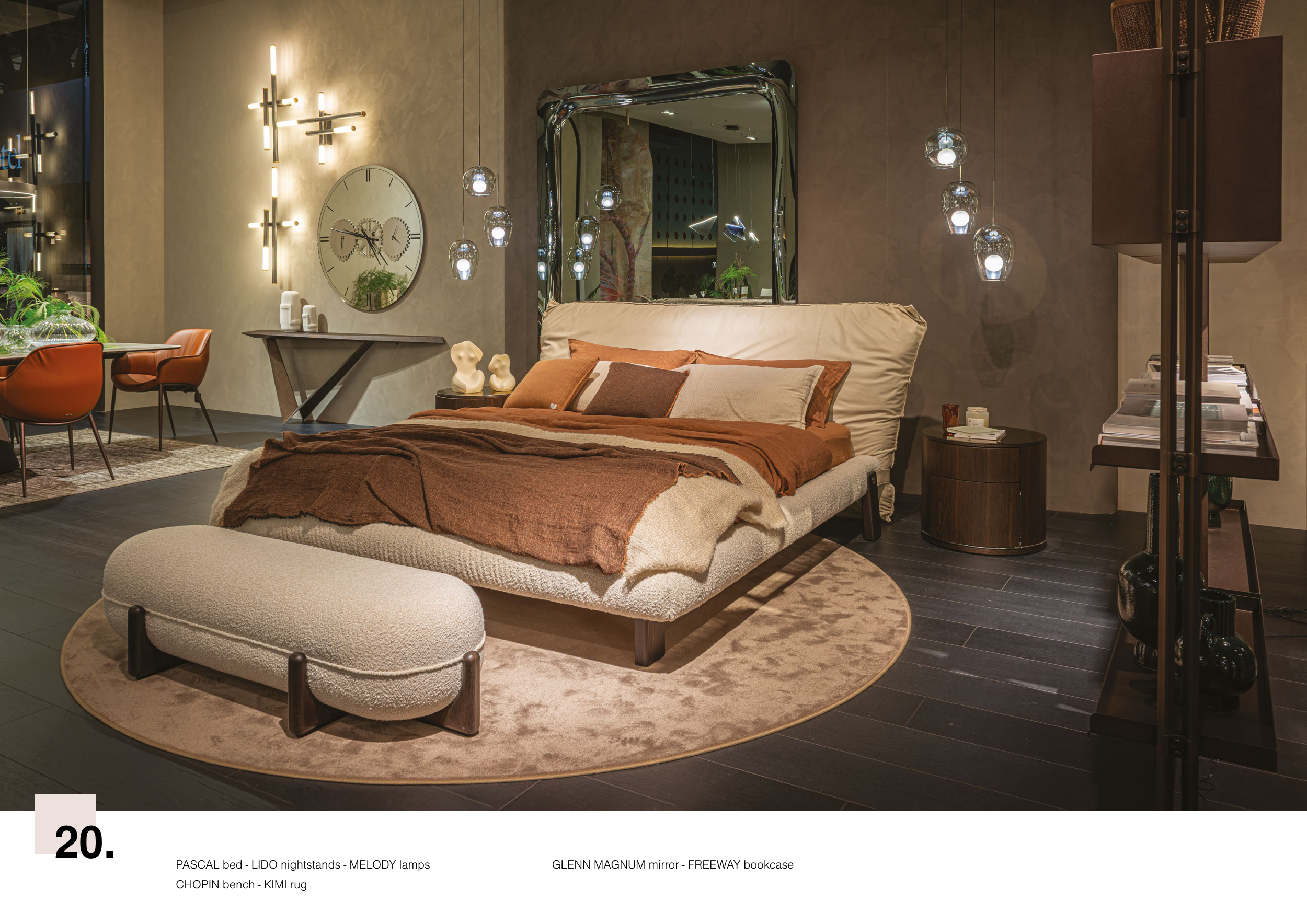 PASCAL bed - LIDO nightstands - MELODY lamps