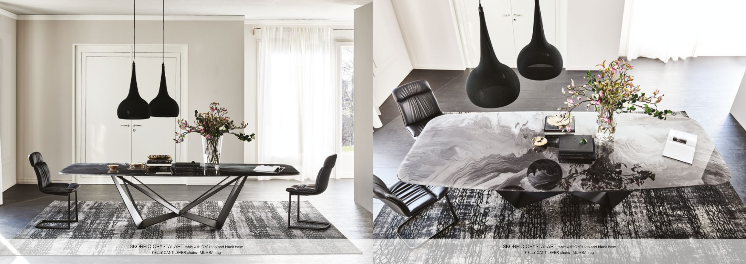 SKORPIO CRYSTALART table with CY01 top and black base KELLY CANTILEVER chairs - MUMBAI rug SKORPIO CRYSTALART table with CY01 top and black base KELLY CANTILEVER chairs - MUMBAI rug