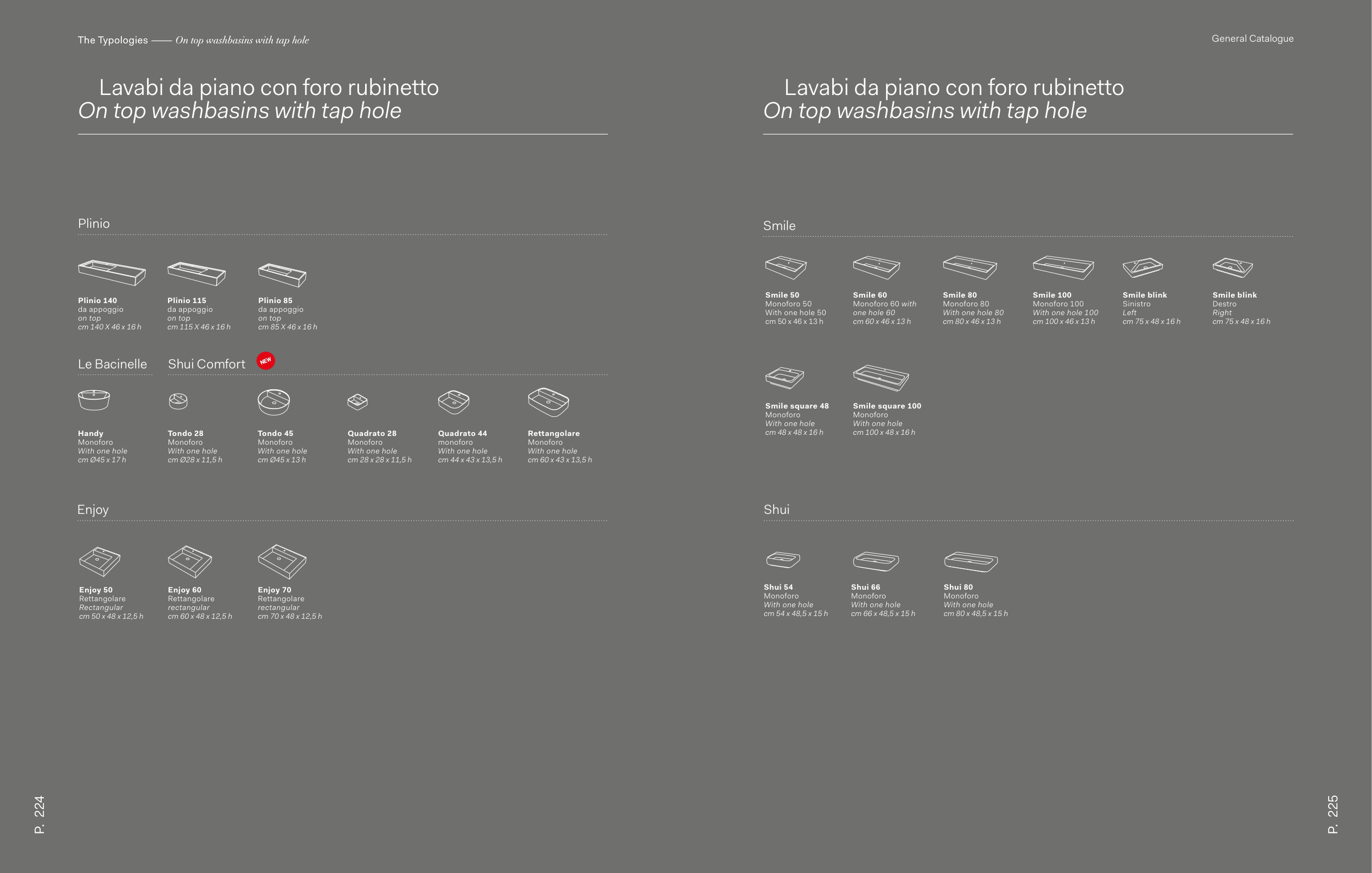 The Typologies ––––– On top washbasins with tap hole