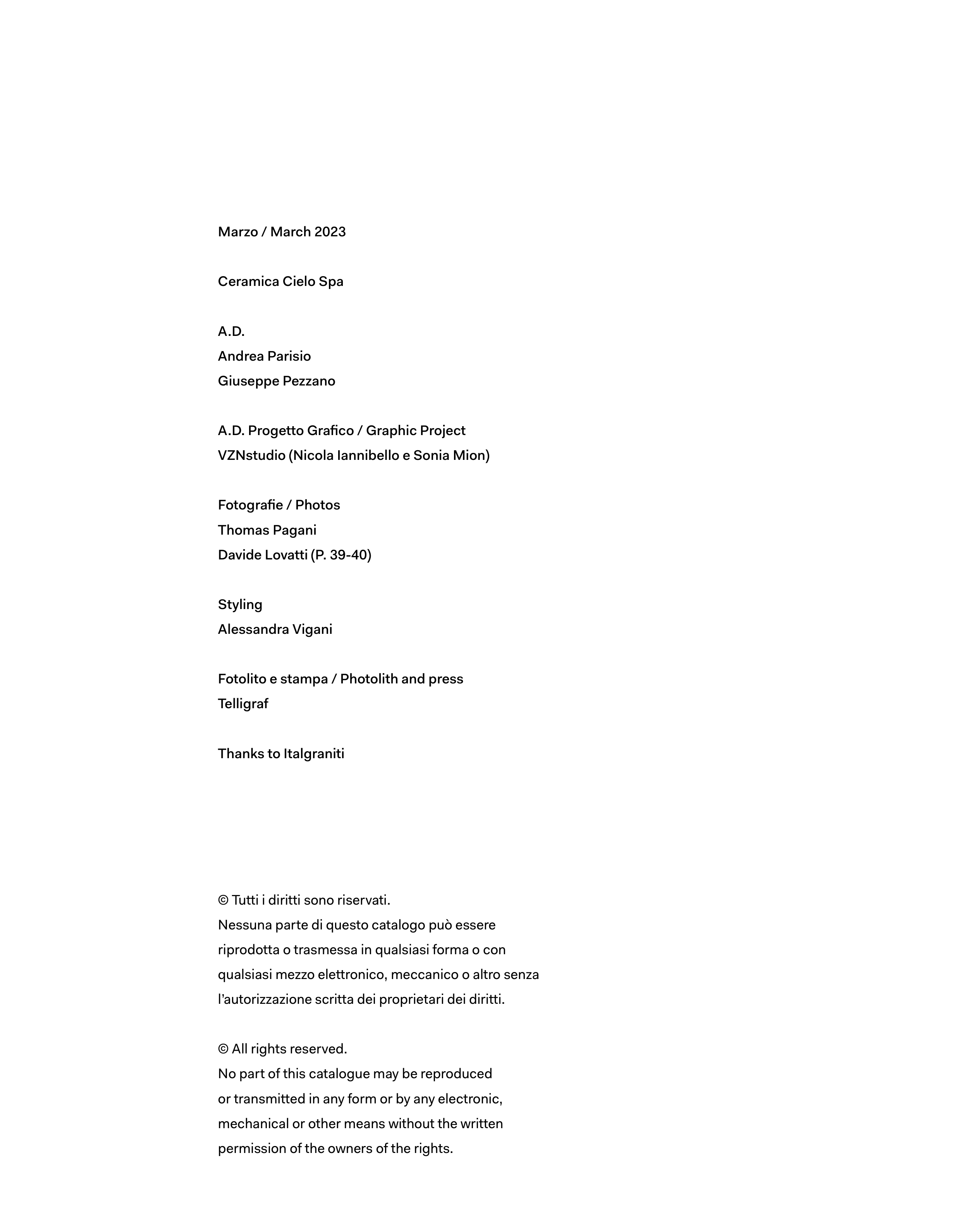 Nessuna parte di questo catalogo può essere