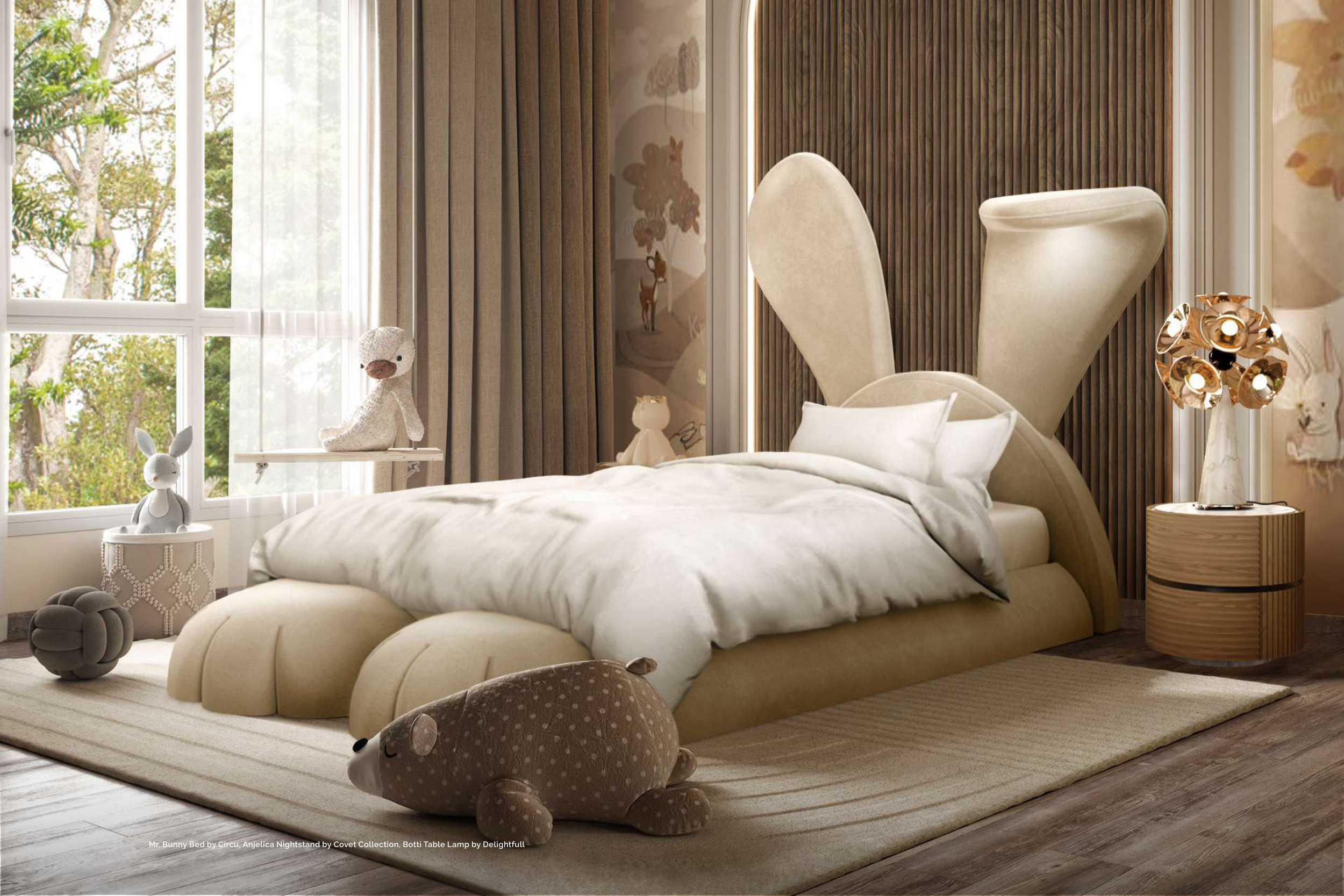 Mr. Bunny Bed by Circu, Anjelica Nightstand by Covet Collection, Botti Table Lamp by Delightfull