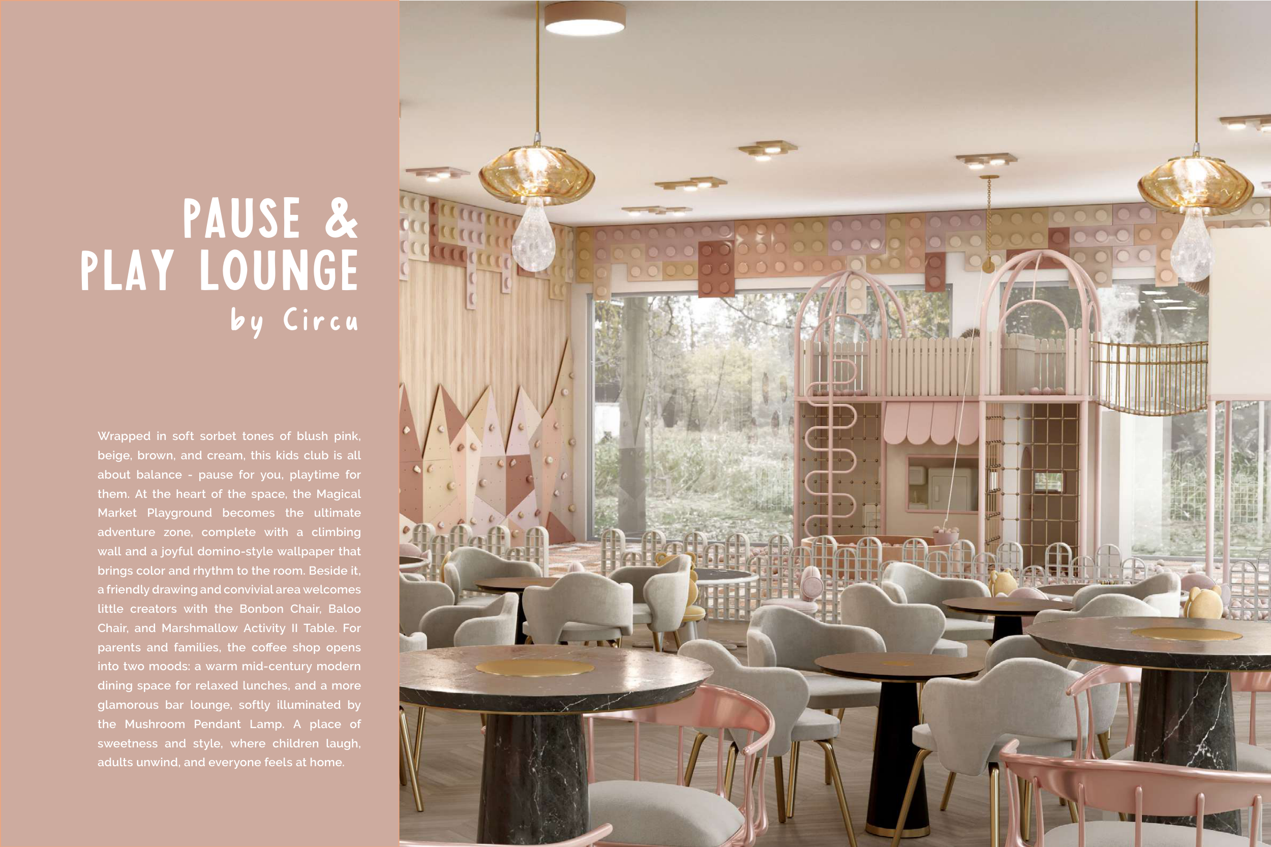 beige, brown, and cream, this kids club is all