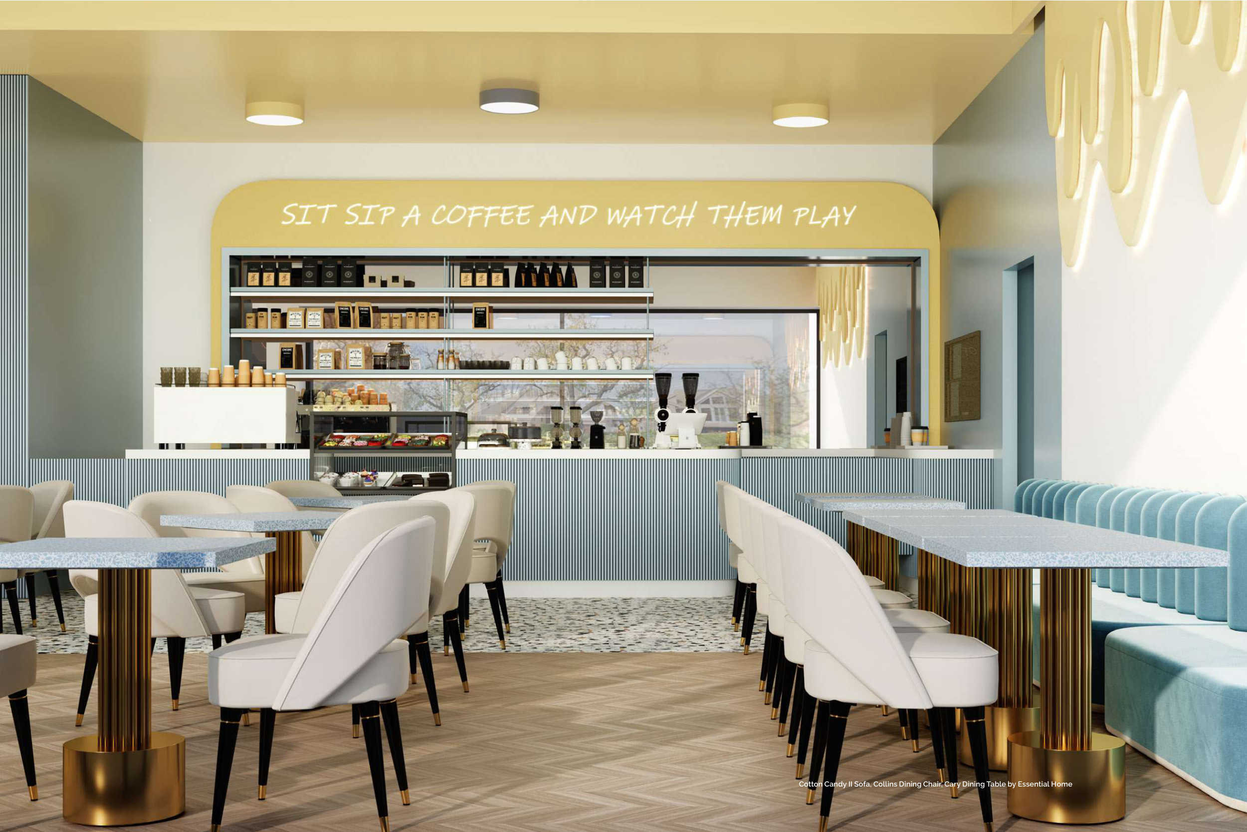 Cotton Candy II Sofa, Collins Dining Chair, Cary Dining Table by Essential Home