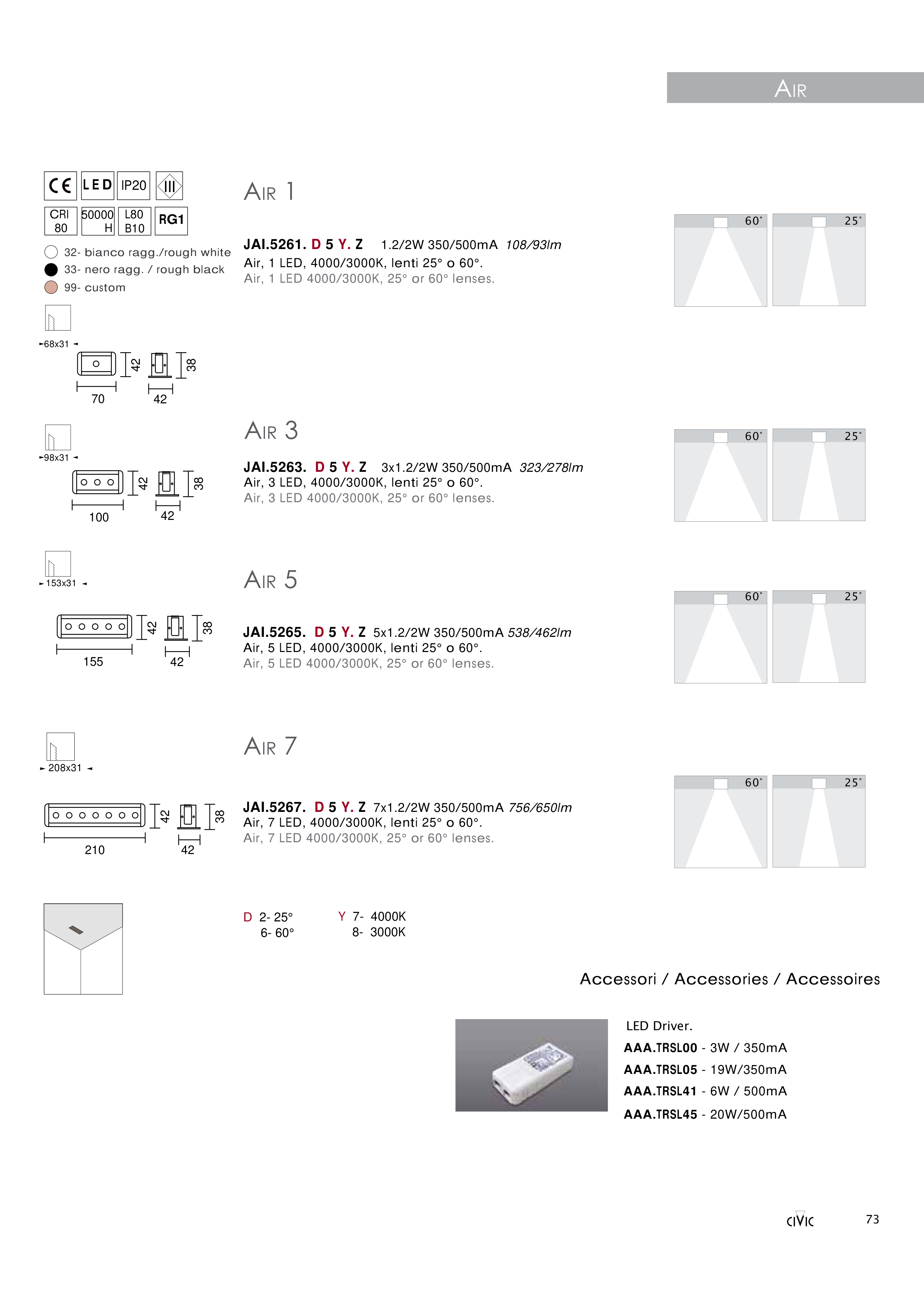Air, 1 LED 4000/3000K, 25° or 60° lenses.