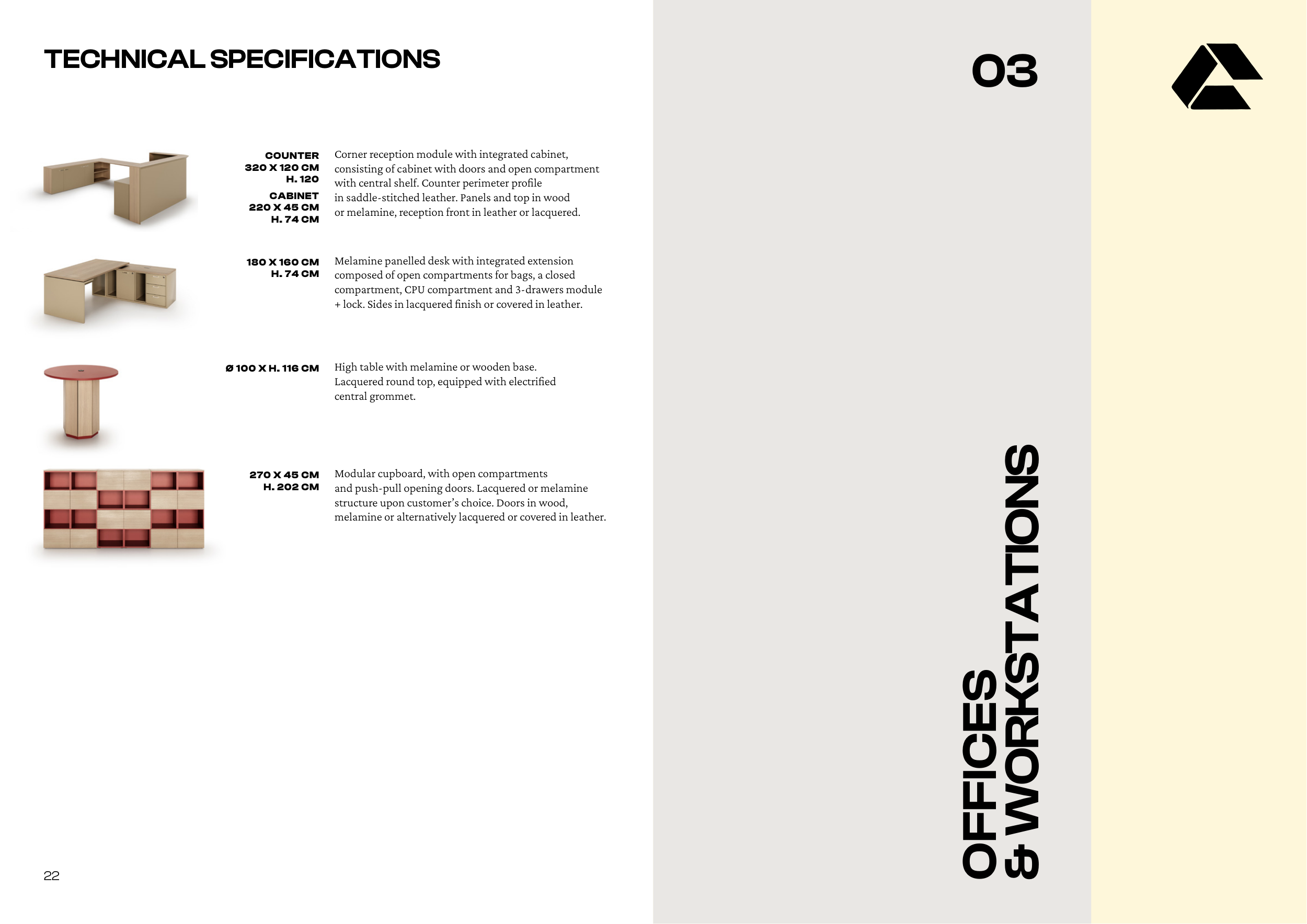 or melamine, reception front in leather or lacquered.