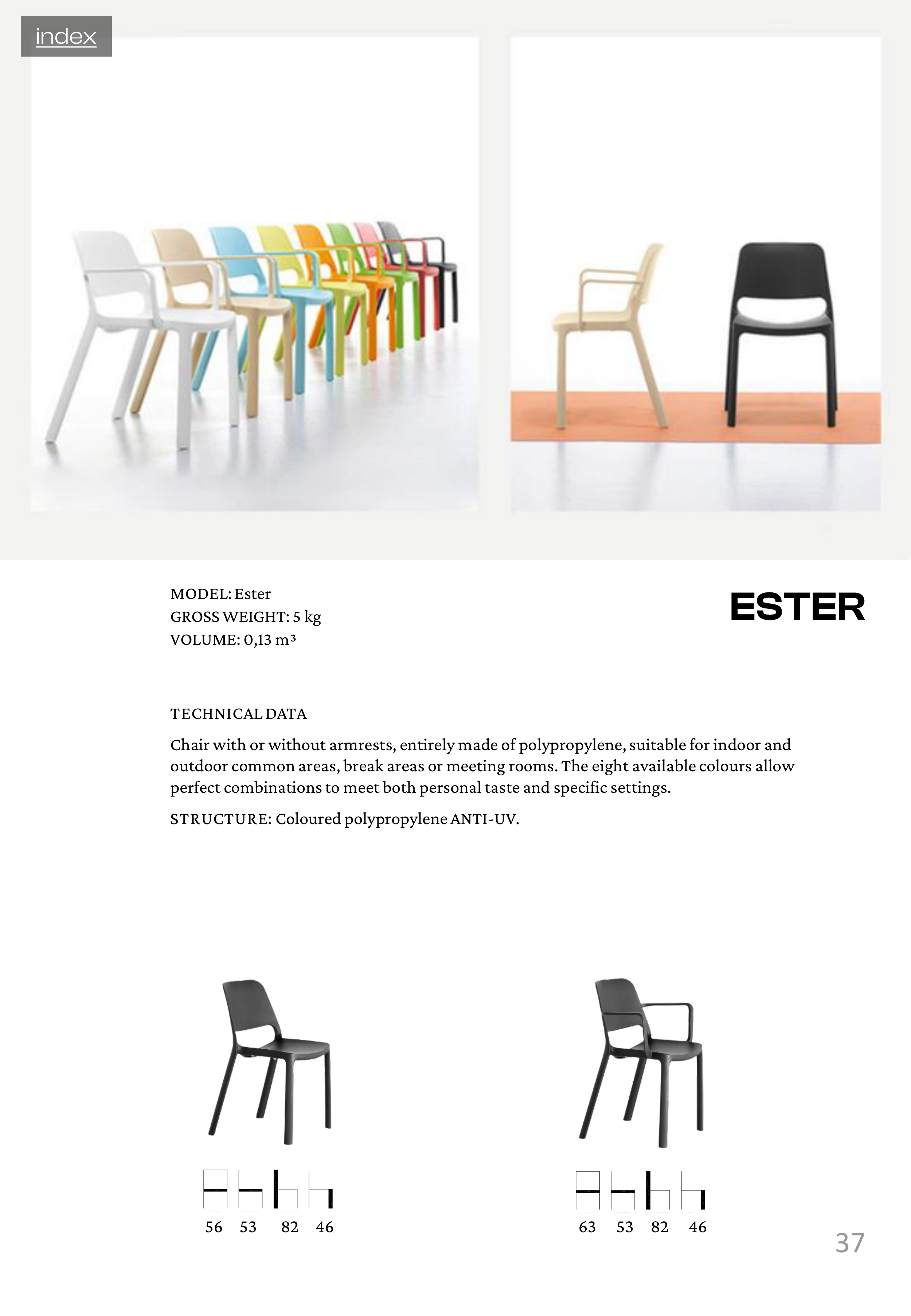 Chair with or without armrests, entirely made of polypropylene, suitable for indoor and