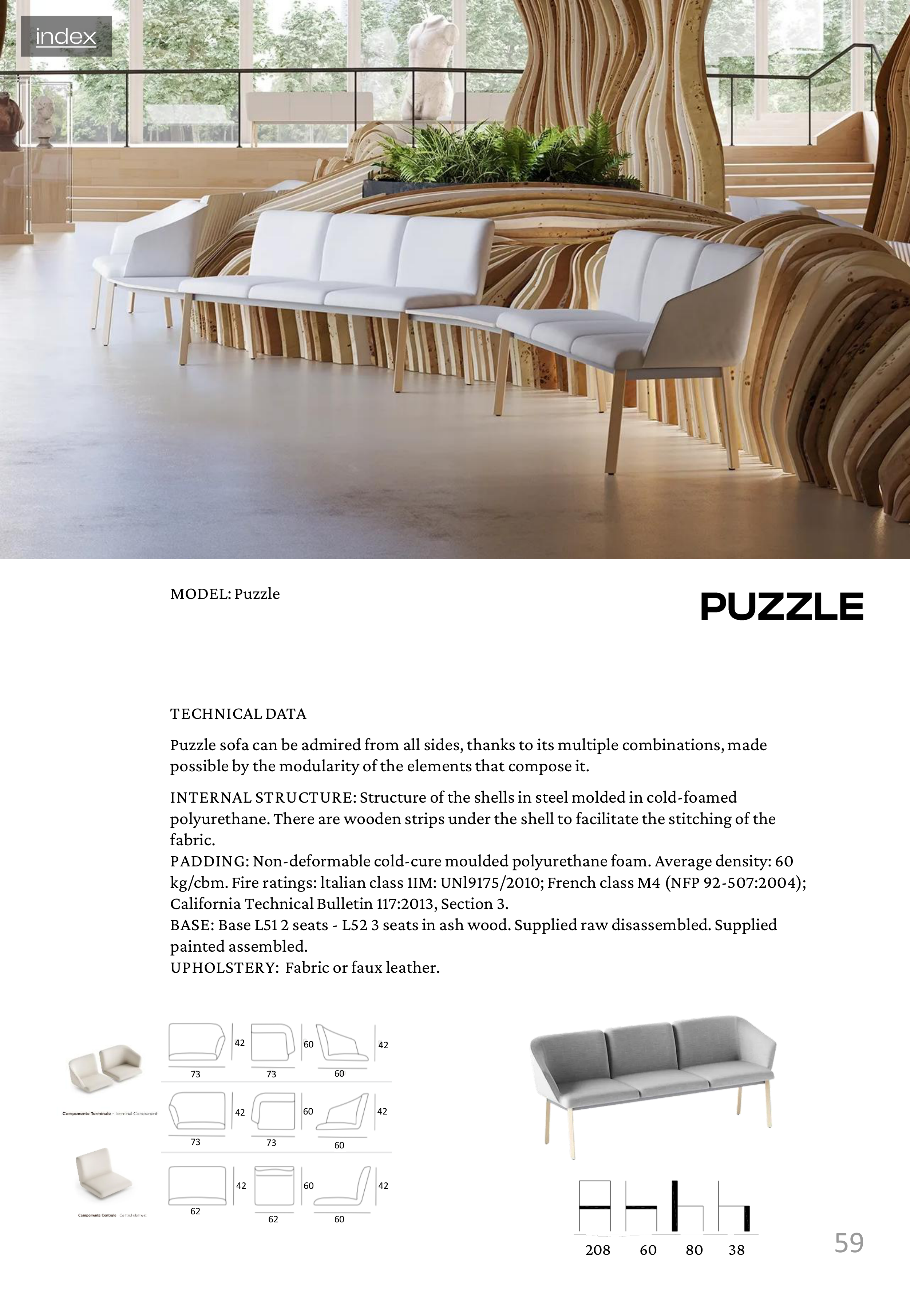BASE: Base L51 2 seats - L52 3 seats in ash wood. Supplied raw disassembled. Supplied