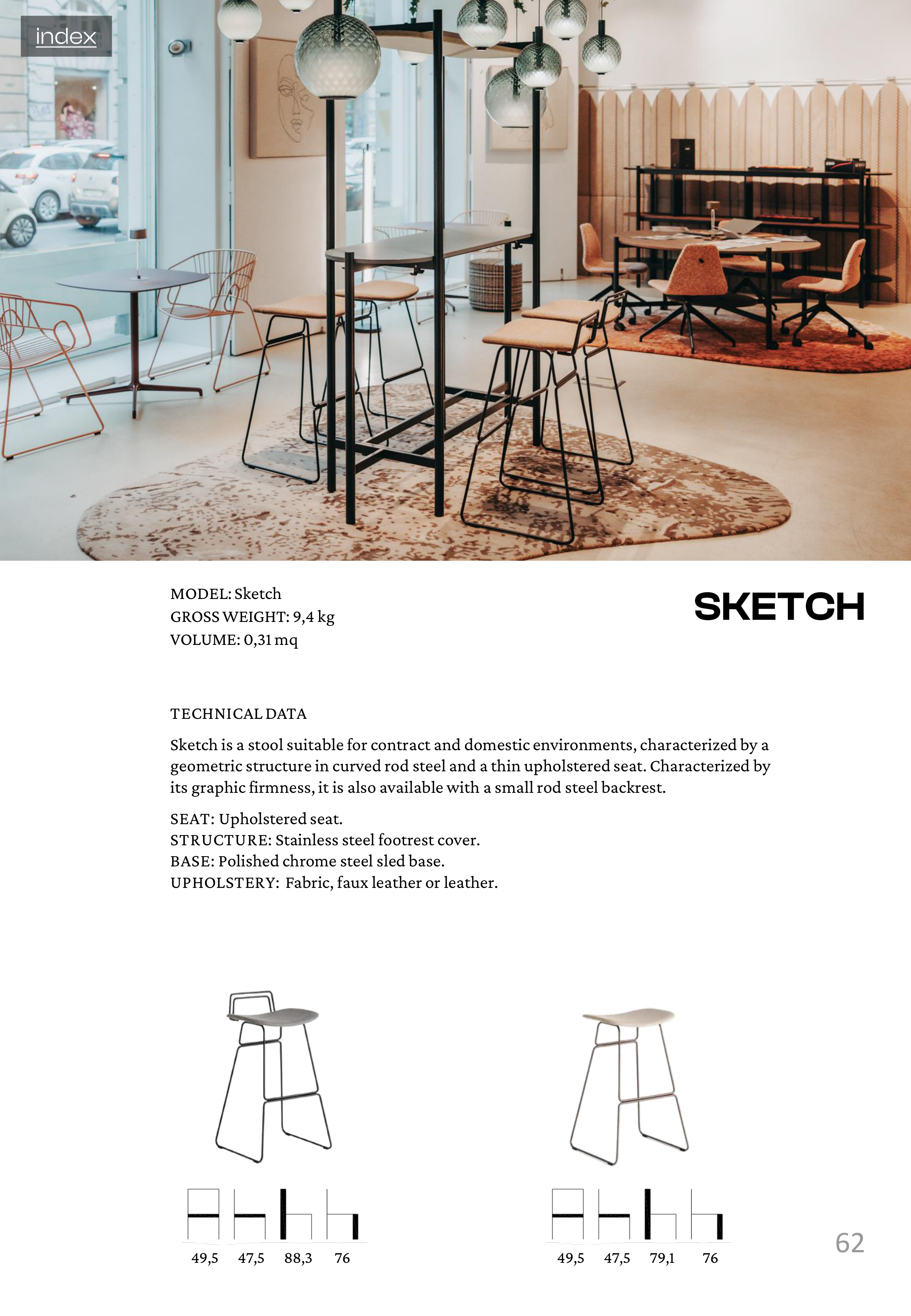 Sketch is a stool suitable for contract and domestic environments, characterized by a