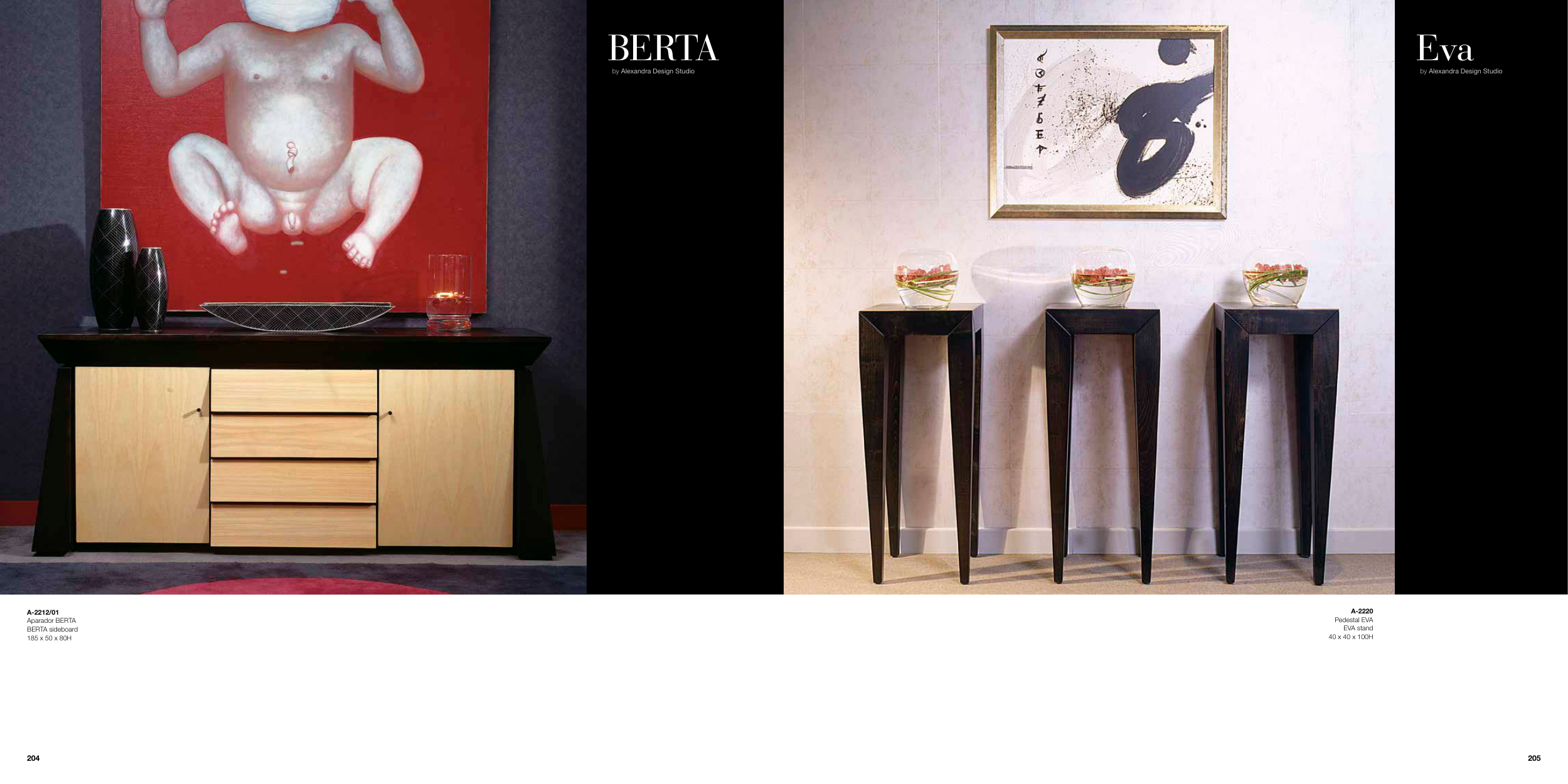 BERTA Eva by Alexandra Design Studio by Alexandra Design Studio A-2220 Pedestal EVA EVA stand 40 x 40 x 100H A-2212/01 Aparador BERTA BERTA sideboard 185 x 50 x 80H 205 204