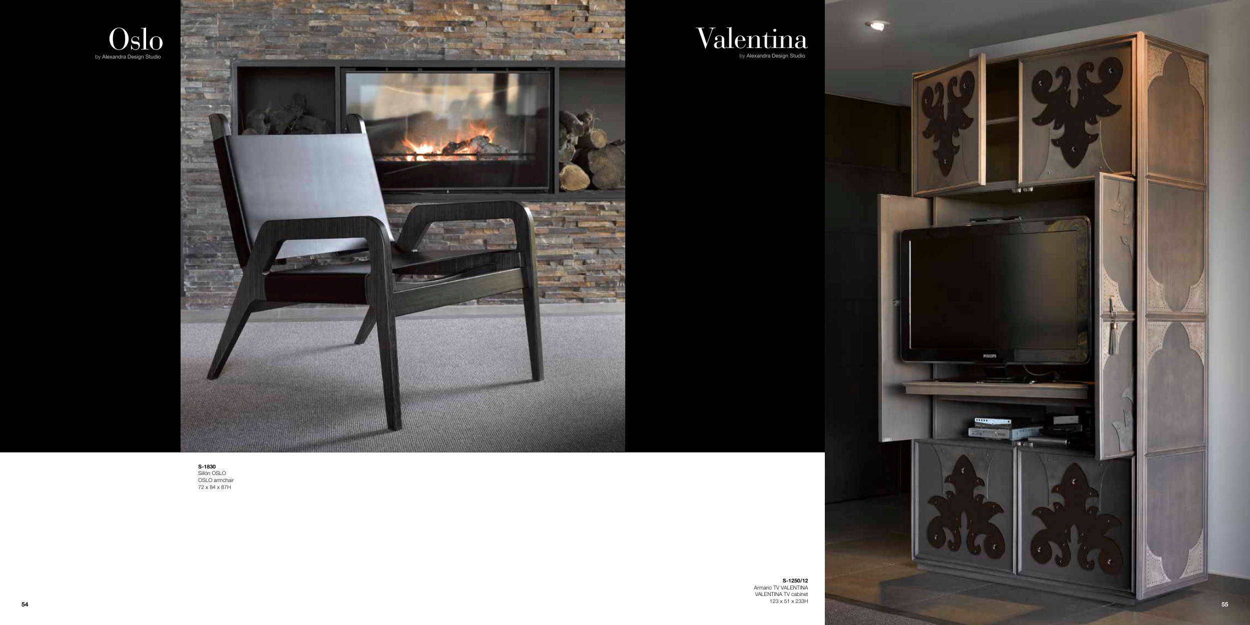 Oslo by Alexandra Design Studio S-1830 Sillón OSLO OSLO armchair 72 x 84 x 87H Valentina by Alexandra Design Studio S-1250/12 Armario TV VALENTINA VALENTINA TV cabinet 123 x 51 x 233H 55 54